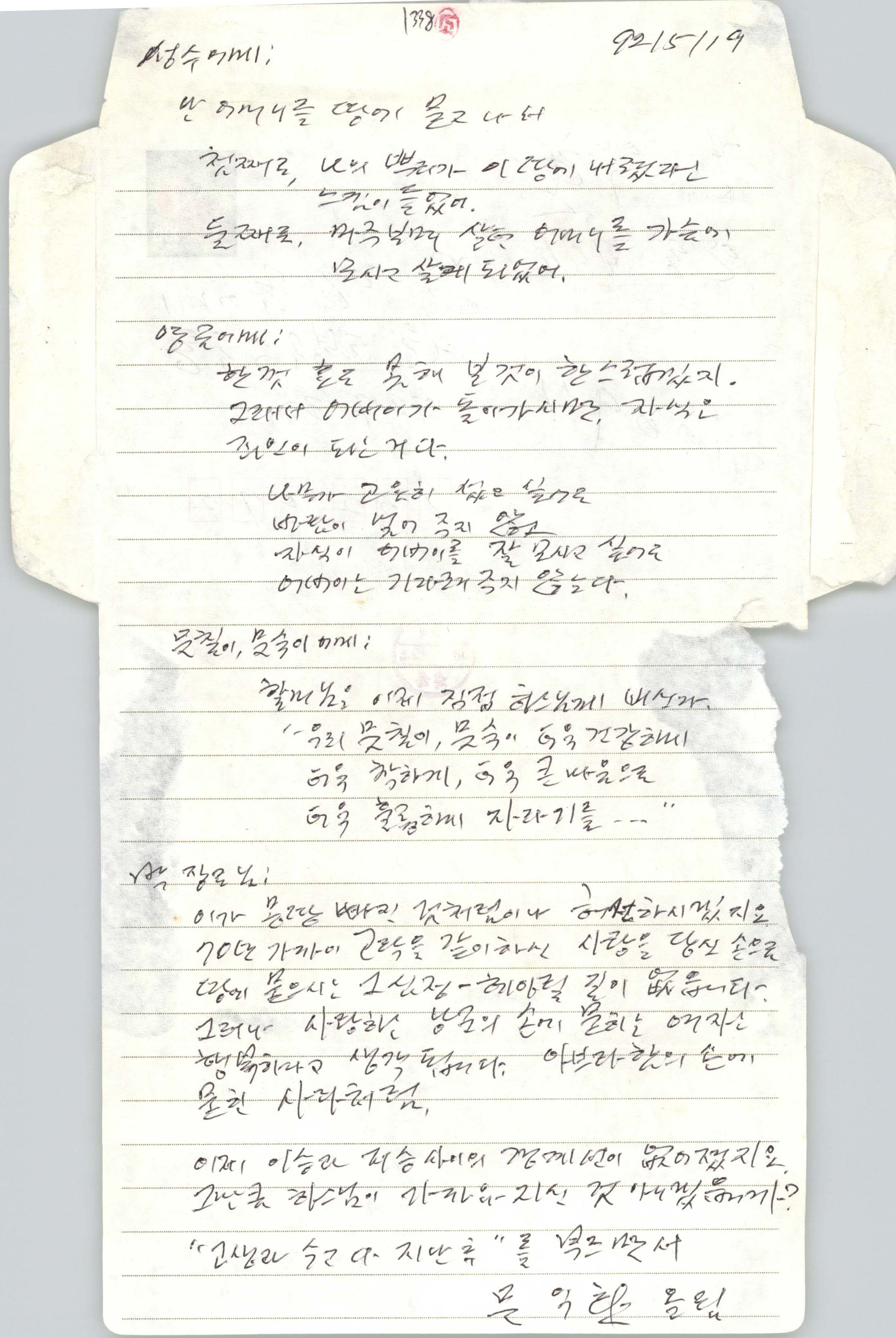 이제 이승과 저승 사이의 경계선이 없어졌지요. 그만큼 하느님이 가까워지신 것 아니겠습니까? “고생과 수고 다 지난 후”를 부르면서. 문익환 드림