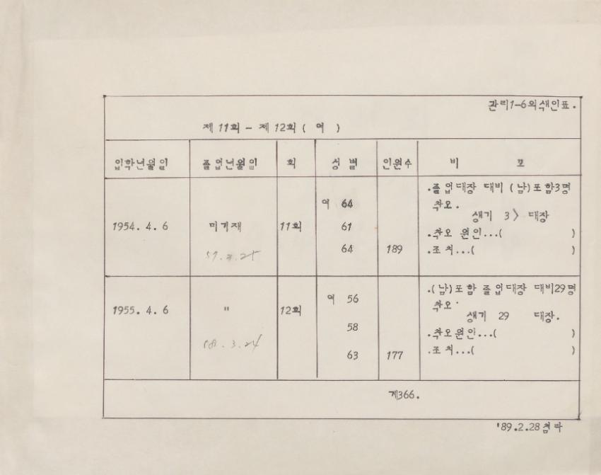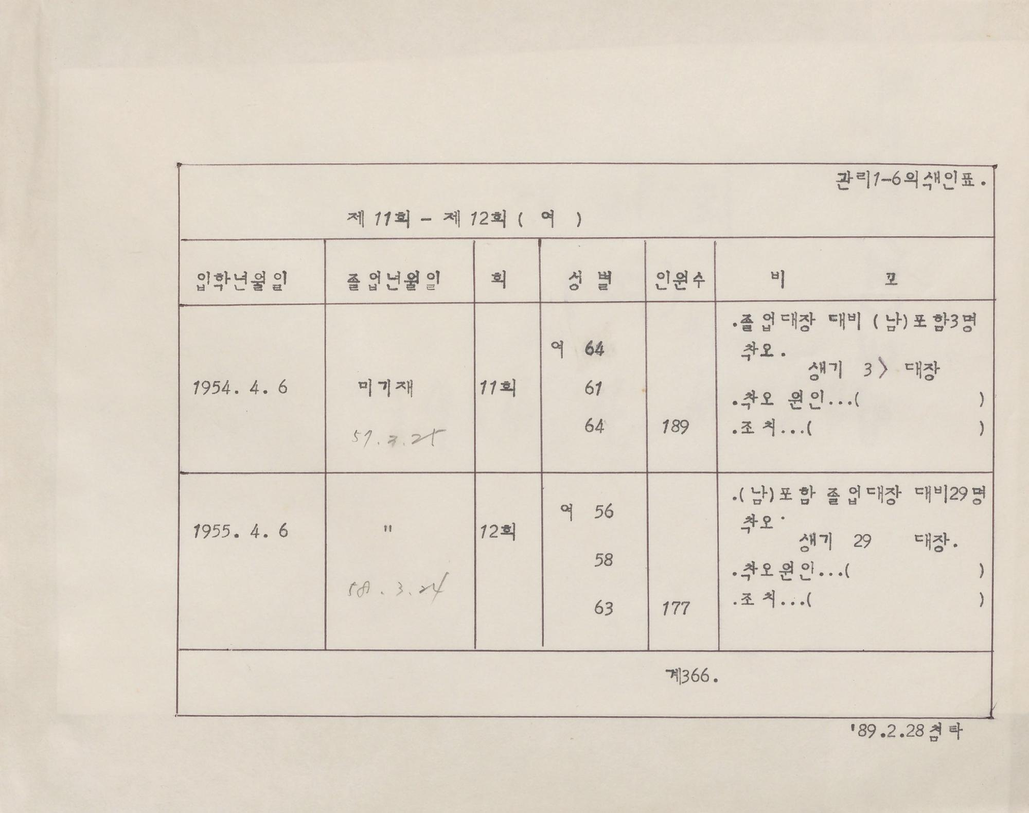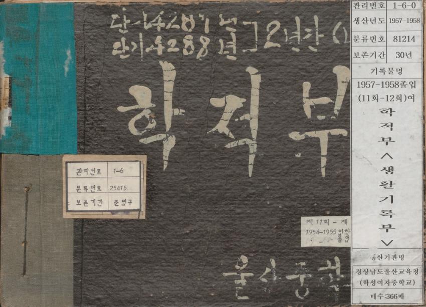 단기4290년(1957년 3월)졸업-단기4291년(1958년 3월) 졸업한 학성여자중학교(제11회-제12회)남 학적부 생활기록부,울산중학교(남)