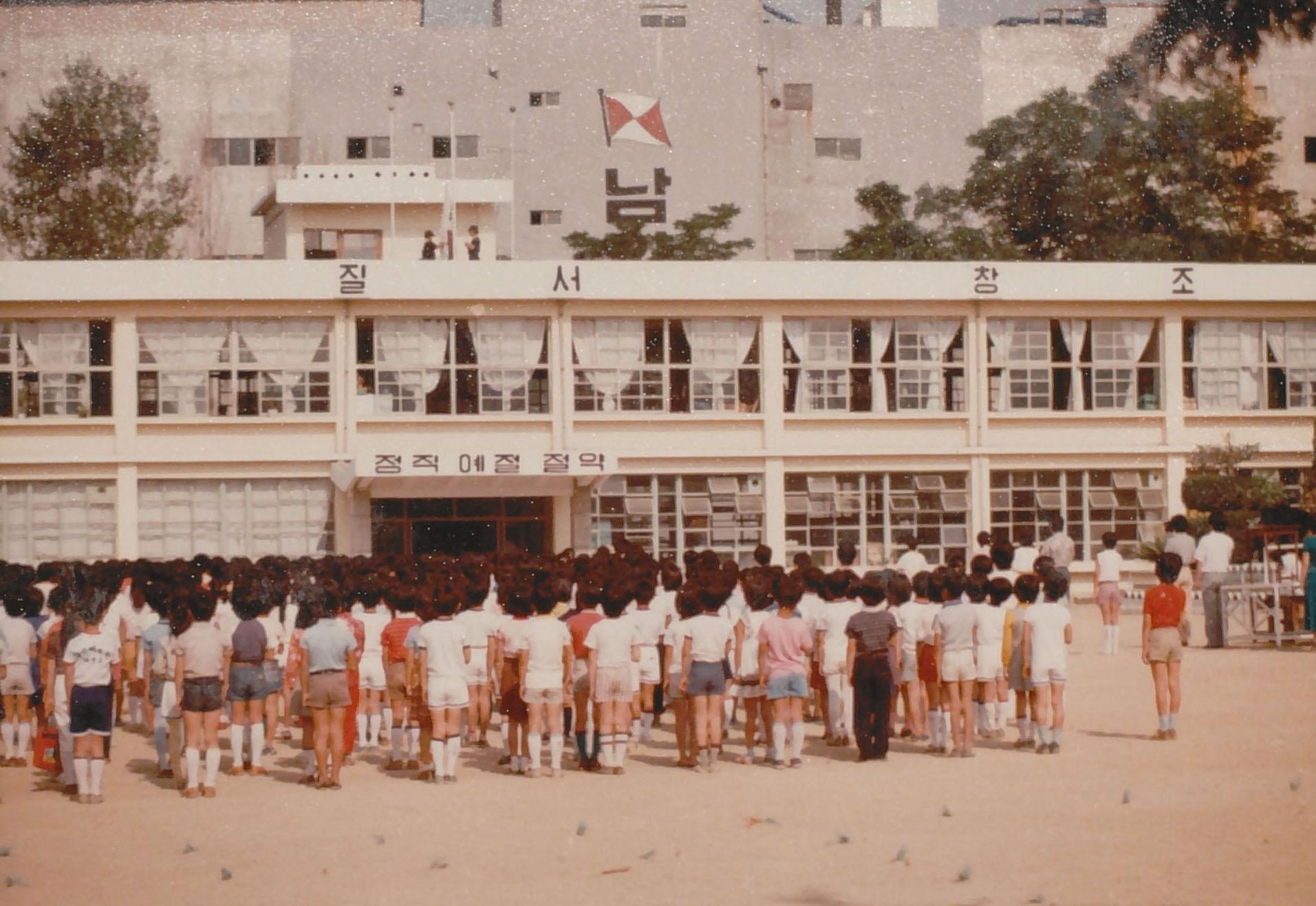 장생포국민학교 1982년 애국 조례 광경