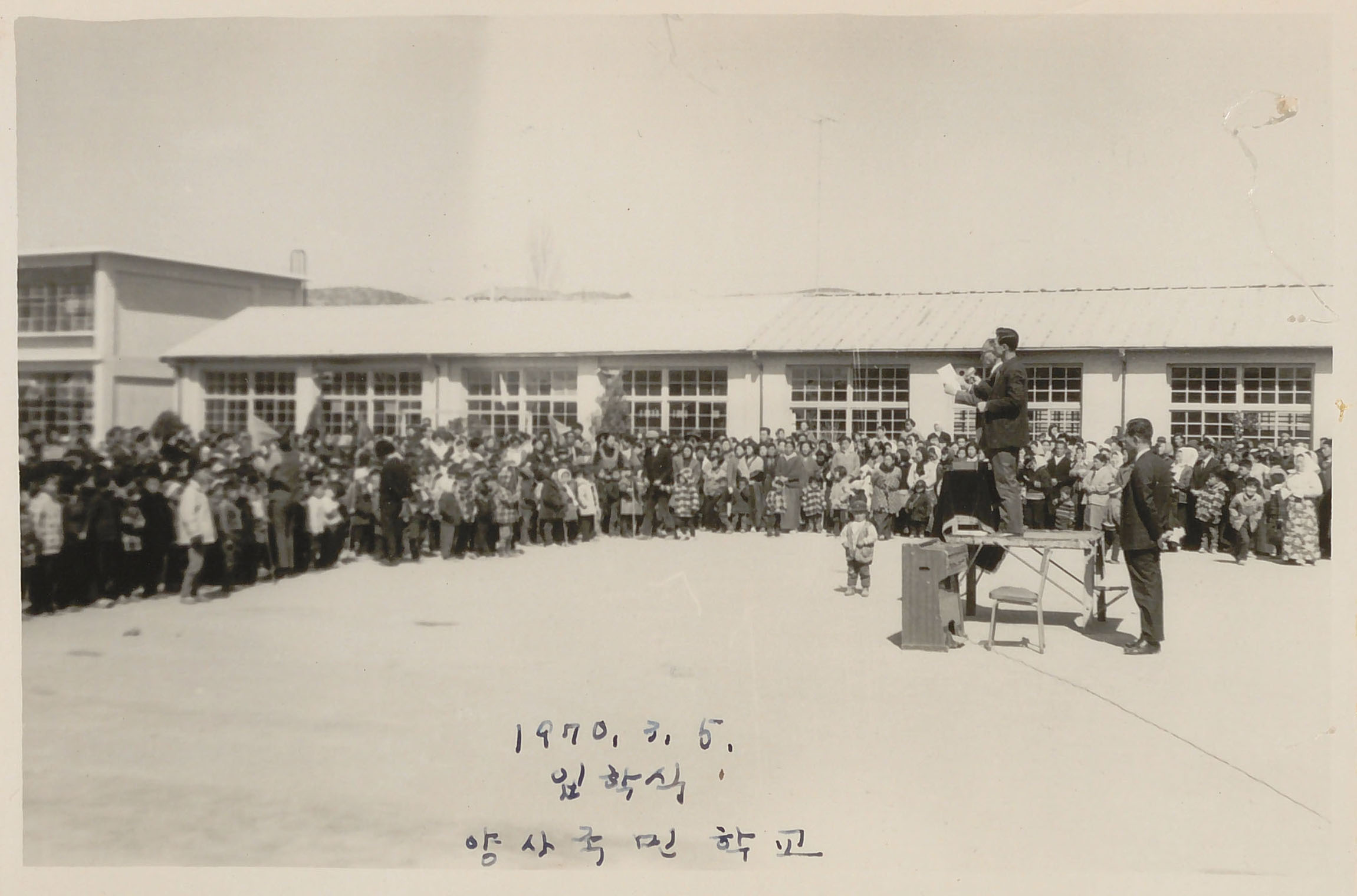 양사국민학교 1973년 민가 담 정리 후 눈섭 화단 설치 사진