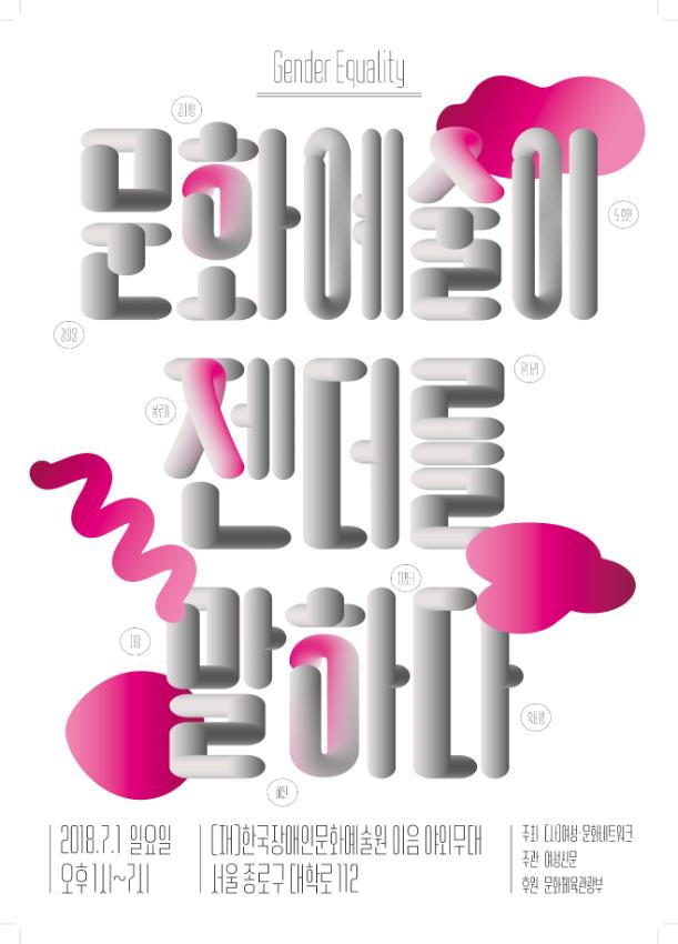 2018년 7월 1일 일요일 한국장애인문화예술원 이음 야외무대에서 진행된 프로젝트 "문화예술이 젠더를 말하다" 포스터.