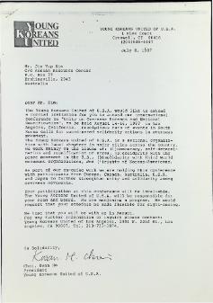 해외 동포 대회 초청편지와 일정표 1987