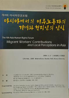제4회 아시아인권포럼 아시아에서의 이주노동자의 기여와 현지인의 인식