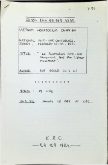 60년대 호주의 반전 운동 및 노동 운동