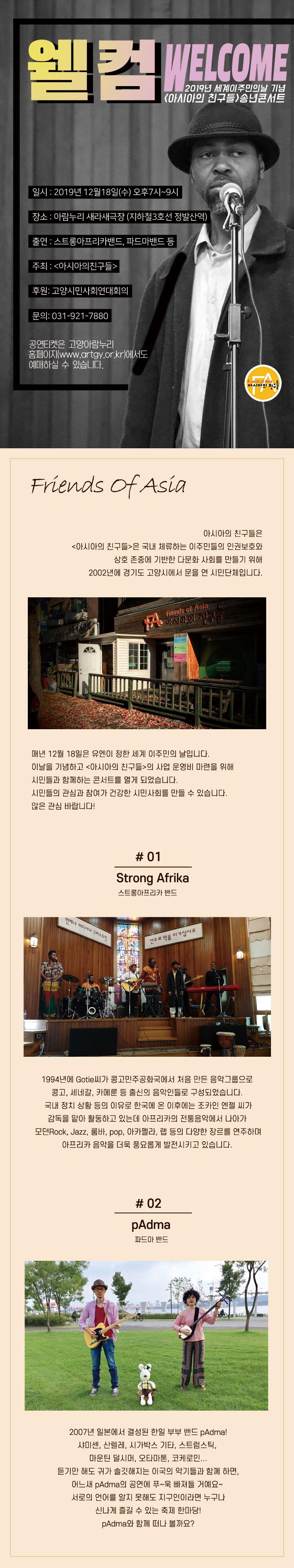 아시아의 친구들이 여는 콘서트에 함께 하여 주셔서 감동적인 그 간의 이야기를 듣고, 그리고 스트롱아프리카밴드, 파드마 밴드와 같은 이주민들의 멋진 공연도 함께 감상할 수 있는 기회였다.