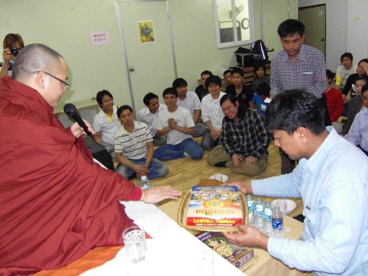 부산, 김해, 울산 등에 있는 미얀만 사람들의 미얀마 설날을 통해서 한 행사를 2009년 4월 19일에 했다. 미얀마 사람들은 부산에 있는 외국인 노동자 인권을 위한 모임의 사무소에서 대구 찟따수카 미얀마 사원의 주지 위세이따 비구스님을 모시고 스님의 법문을 듣고 가사보시를 하여, 미얀마 음식 공양을 올리었다. 불교의 문화를 잘 믿고 따라 지키고 있는 미얀마 사람들의 모습이 너무나 보기 좋다.