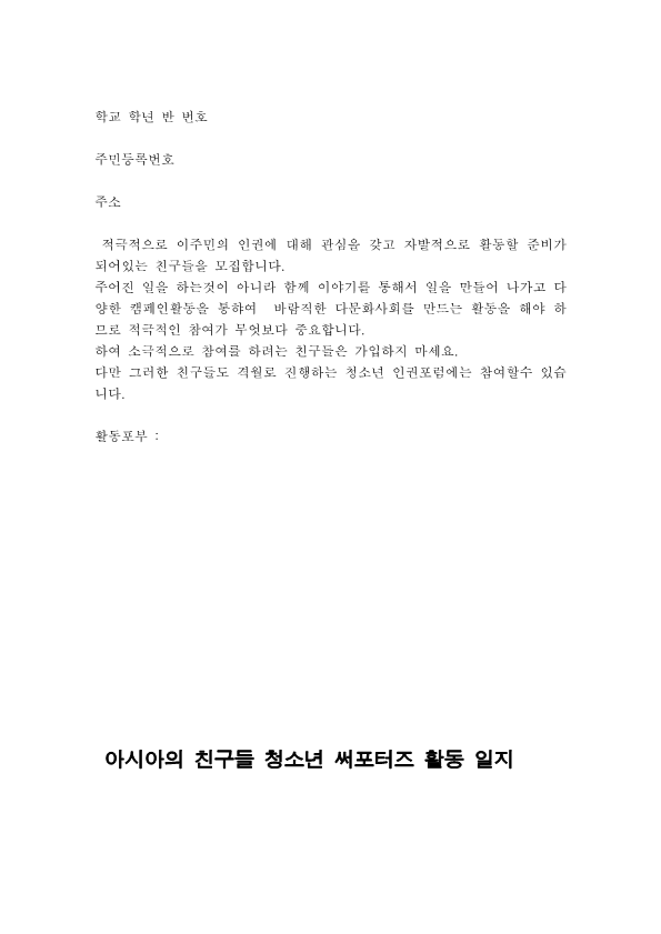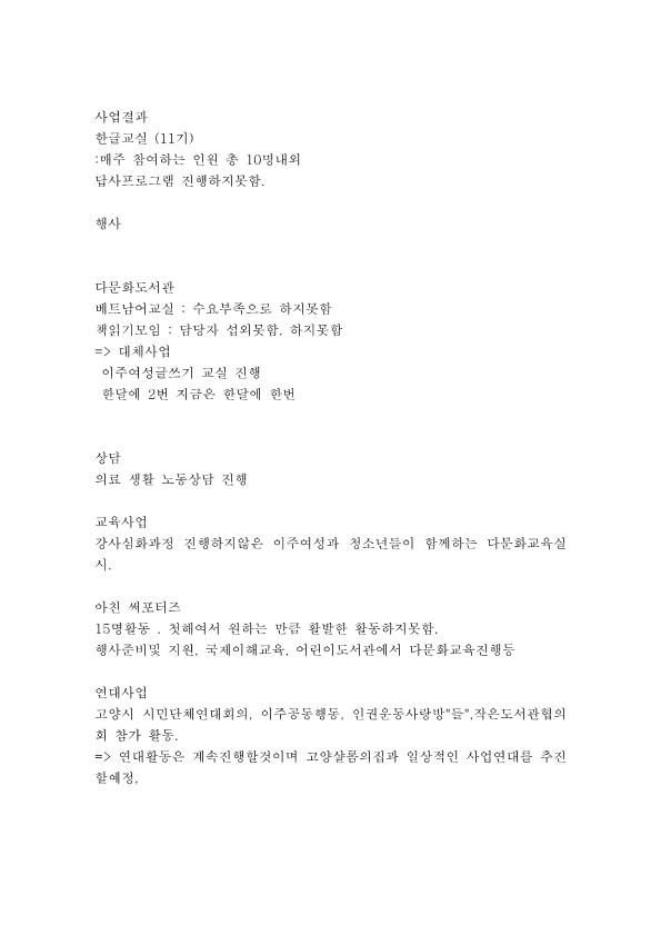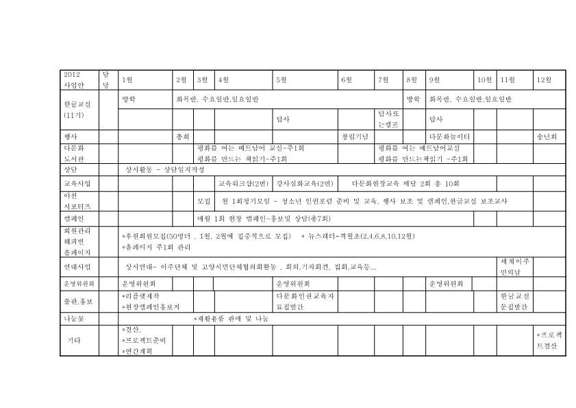 내용: 대화동 사무실 공간을 이용한 다문화교육 사업계획과 일정, 예산서