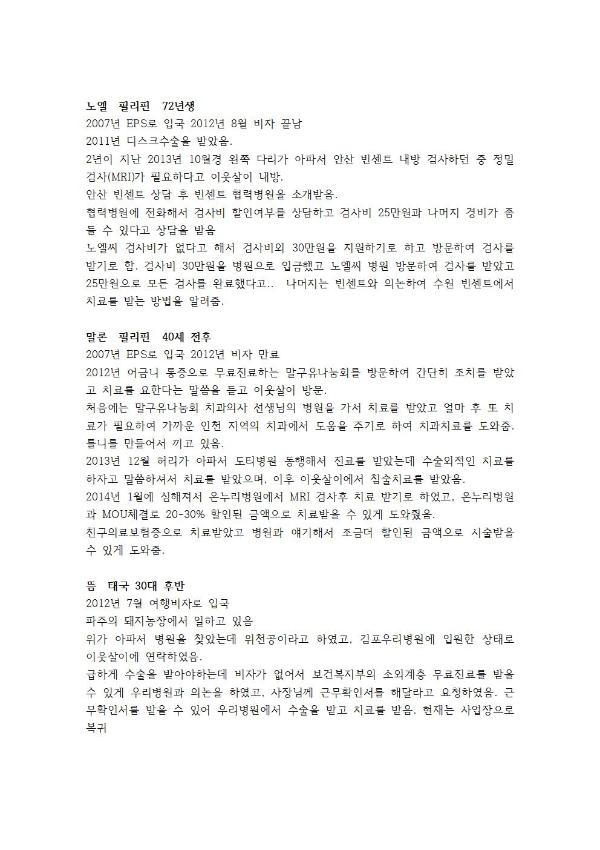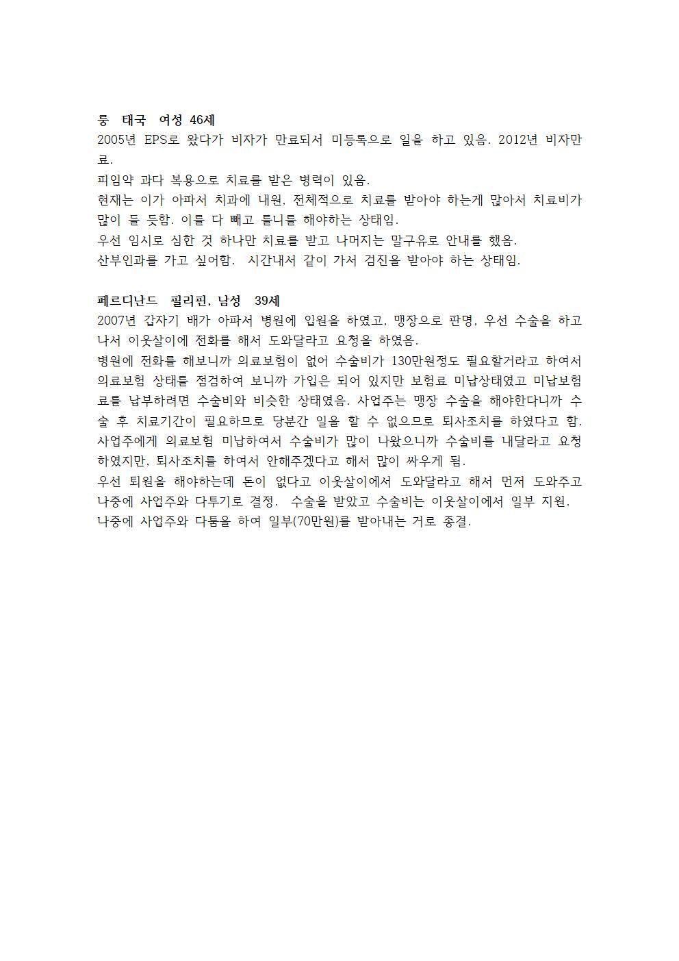 2015 외국인 보건권 개별지원 사례