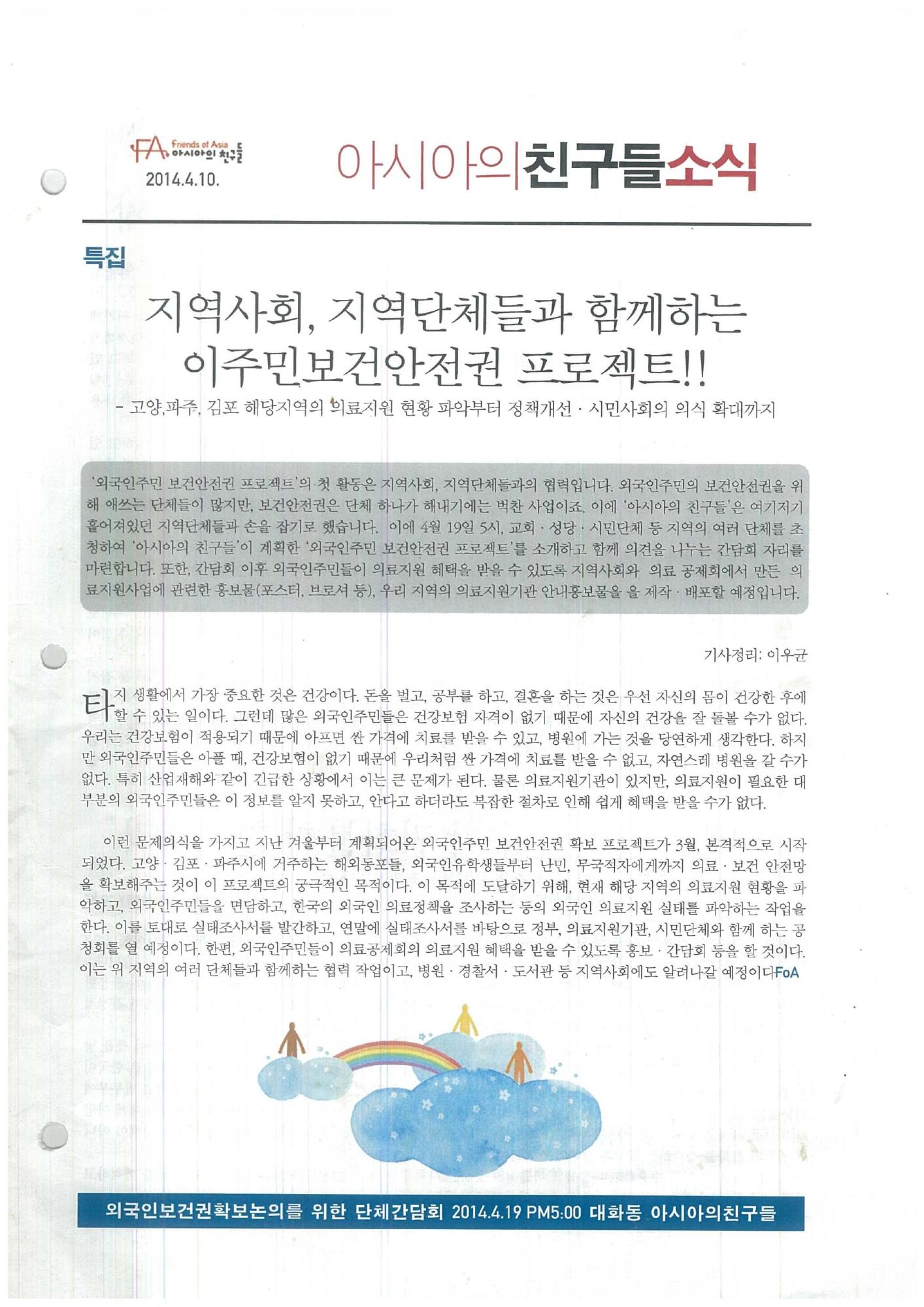아시아의친구들 소식지 2014년 상반기(날짜: 2014.04.10)