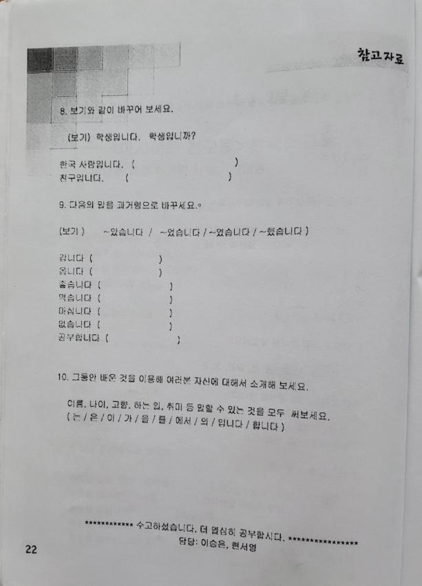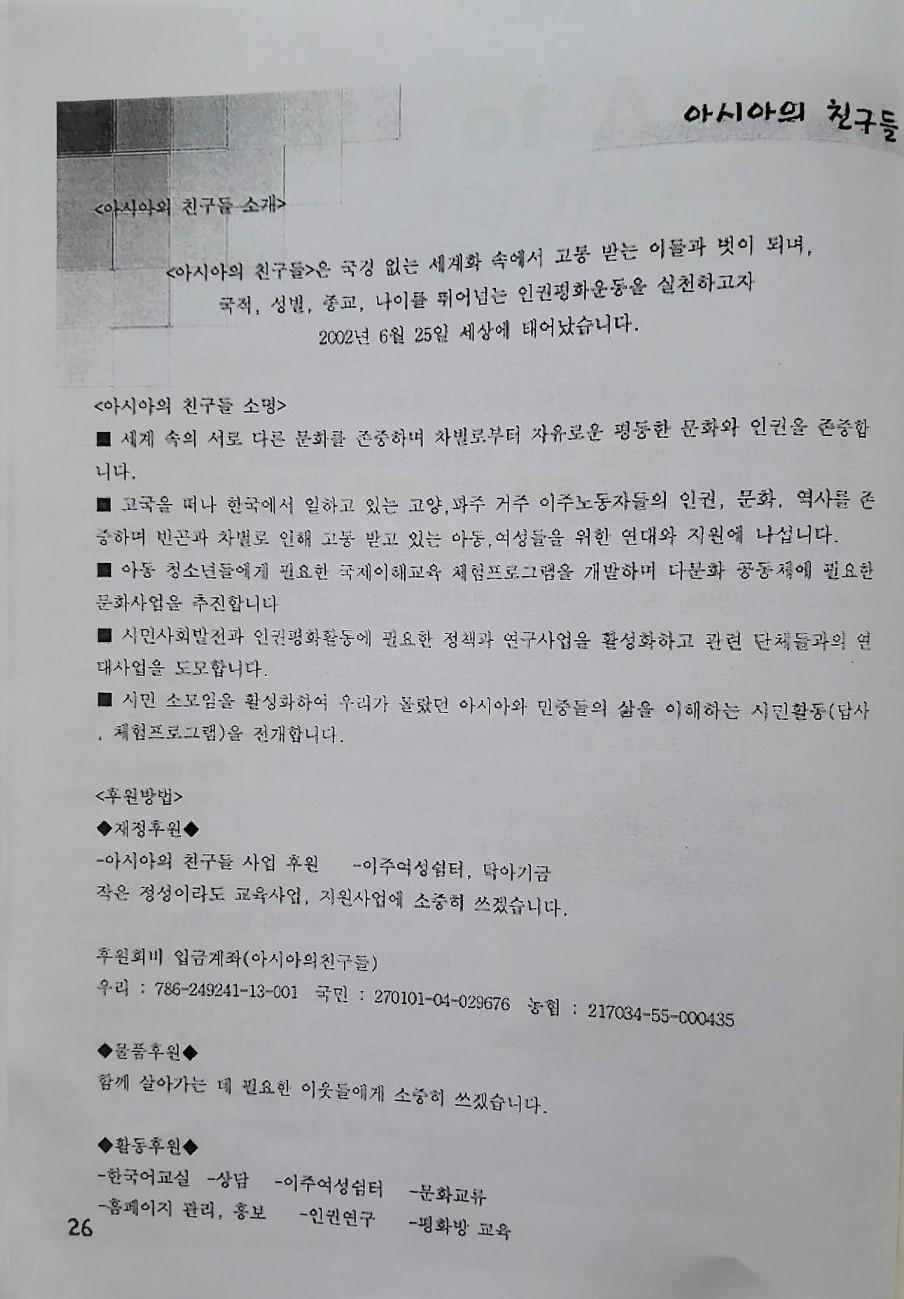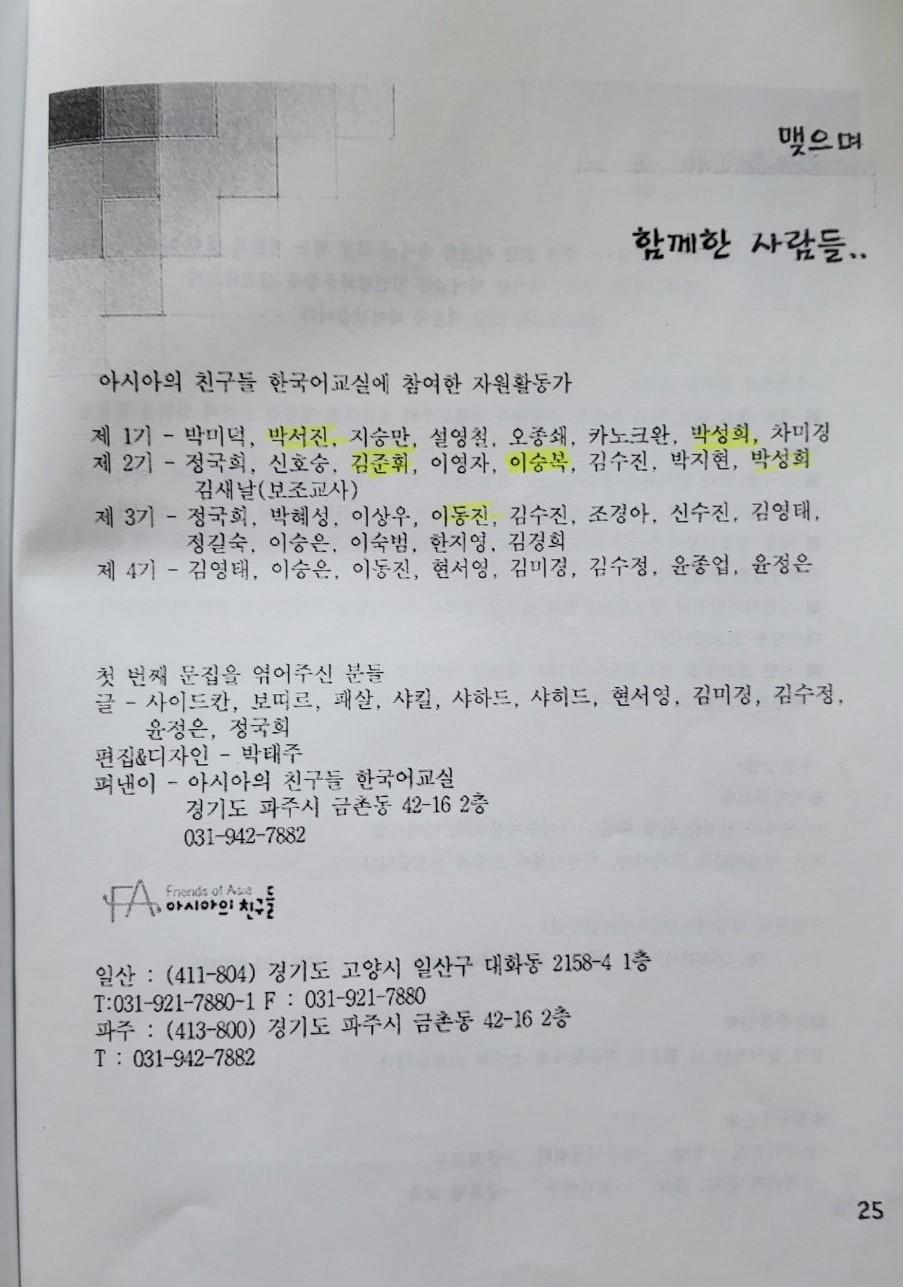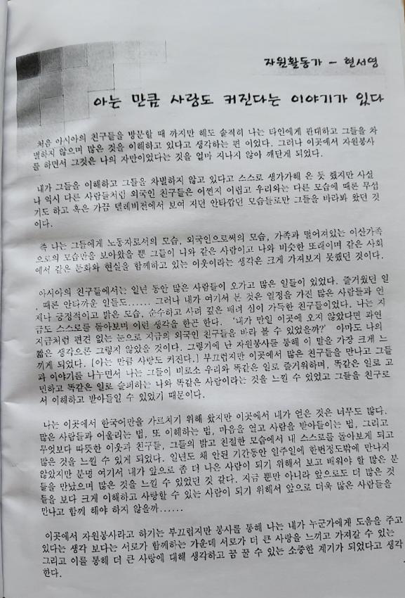 한국어교실 문집 첫번째(날짜: 2004.12.26)