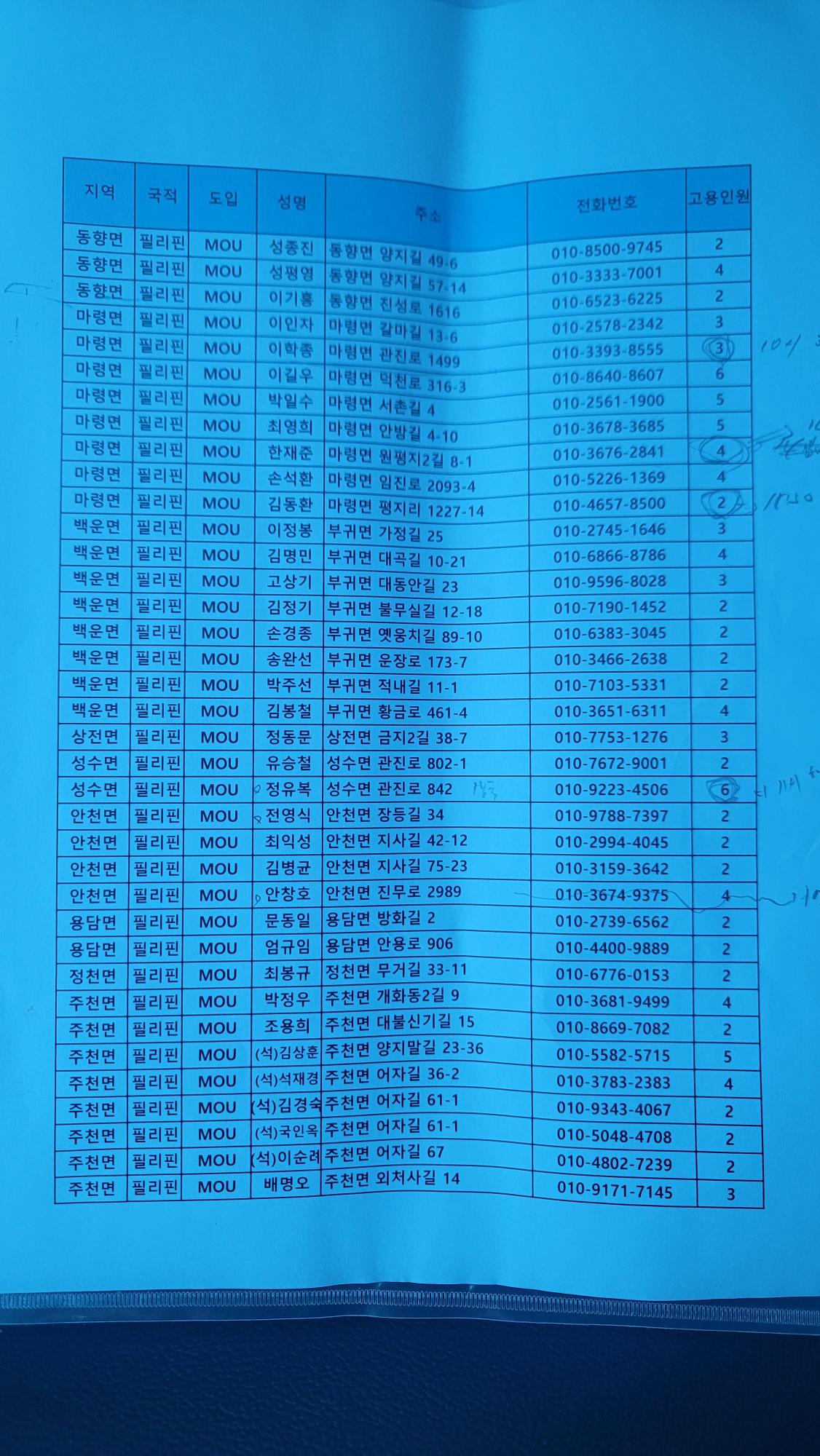 2024년 8월초, 필리핀에서 진안군으로 단기이주 후 계절노동자로 일하는 노동자들을 면담할 때 촬영한 사진들이다. 면담에는 총 18명이 참여했고, 6곳의 일터와슥소를 방문했다. 조사에 참여한 사람은 조경호, 차미경, 존스갈랑 선교사였다. 현지에서 계절노동자들을 면담하도록 도움을 주신 분은 이호율 (진안군 전 인력지원팀장 ) 씨 였다. 기록에 드러난 장소- 숙소, 일터, 농장 면담 언어 - 영어. 따갈로그어