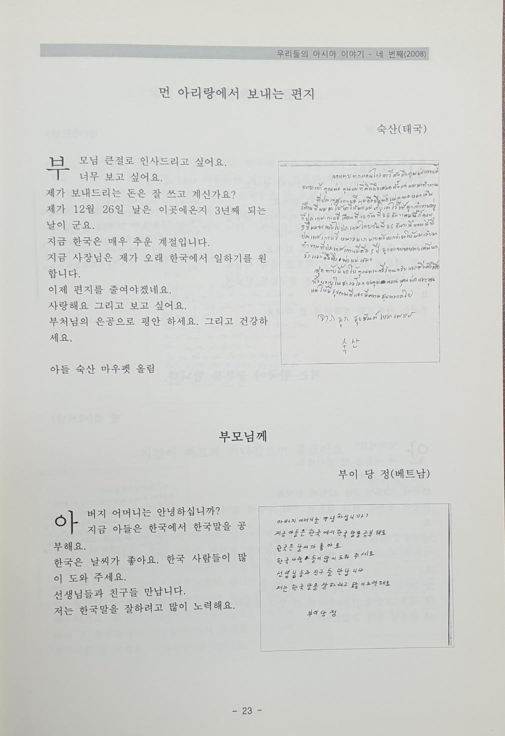 태국에서 온 숙산과 베트남에서 온 부이 당 정의 편지글이다