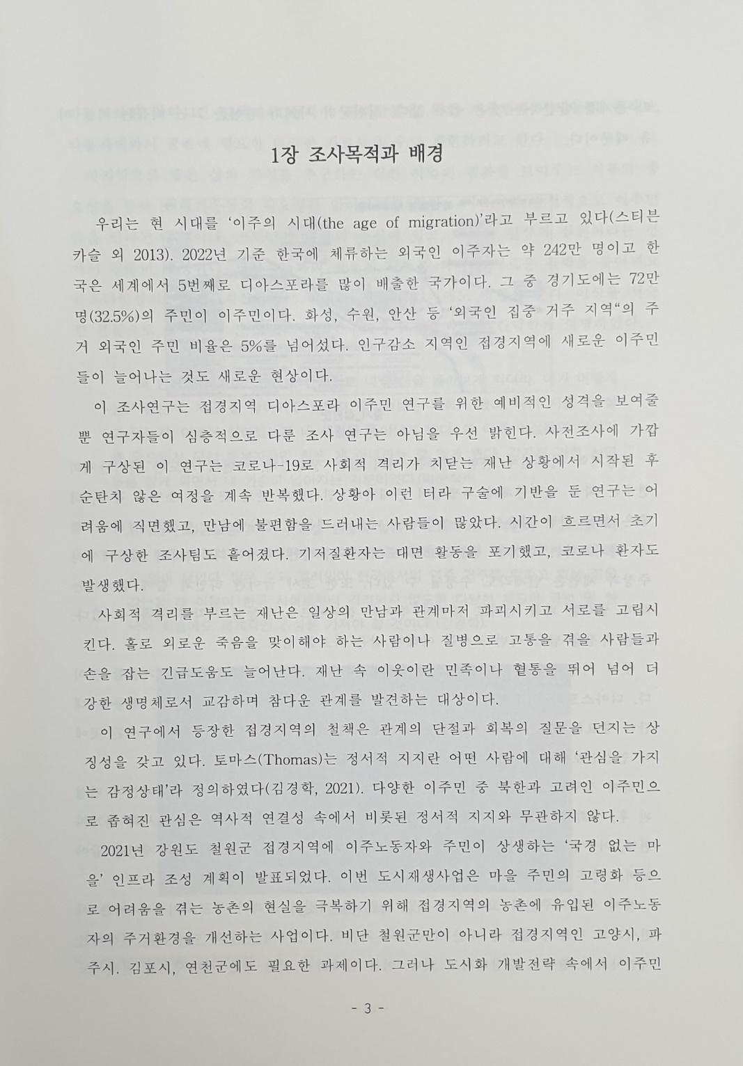 경기북서부 접경지역 디아스포라의 일상에 관한 조사보고서