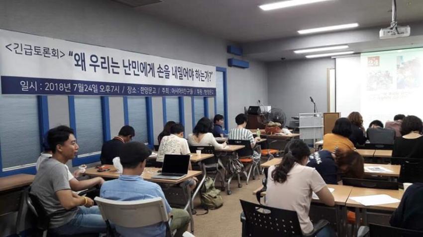 7월24일 오후7시 한양문고 주엽점 한강홀에서 긴급토론회 <왜 우리는 난민에게 손을 내밀어야 하는가?>가 열림. 당시 행사장 모습을 담은 사진기록들