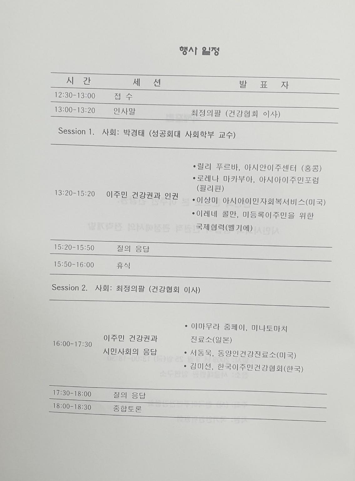 국제포럼 - 인권의 눈으로 본 이주민 건강권 : 시민사회의 응답과 인권적 관점에서의 전략개발