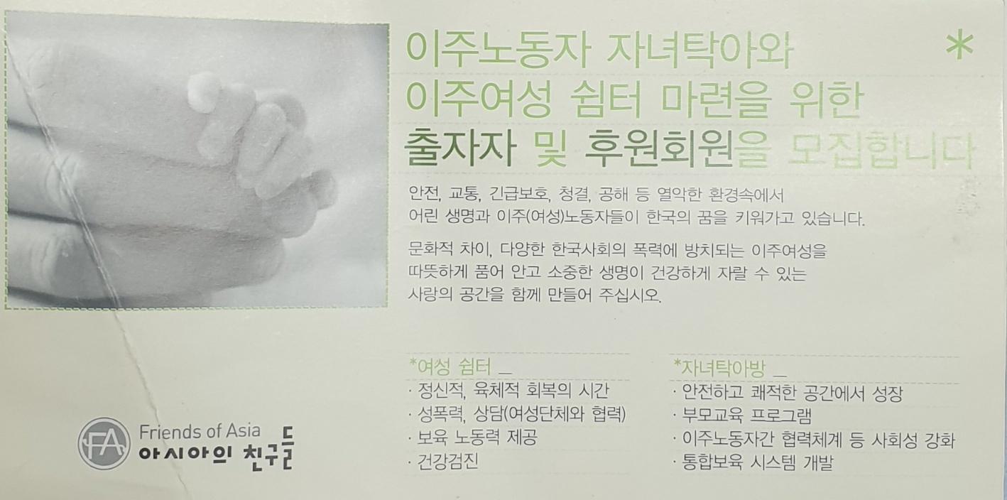 이주노동자 자녀탁아와 이주여성 쉼터 마련을 위한 출자자 및 후원회원을 모집합니다