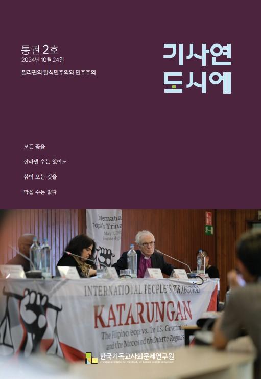 한국 기독교사회문제연구원에서 2024년 발간한 도시에 통권 제2호이다. 자료집은 4개의 글로 구성되어 있다. 필리핀 내부 실정에 대한 분석을 위해 브뤼셀에서 열린 필리핀을 주제로 한 국제민중재판부터 필리핀 기독교가 개입한 사회적 저항운동과 권력에 대한 비판의 글을 담고 있다.