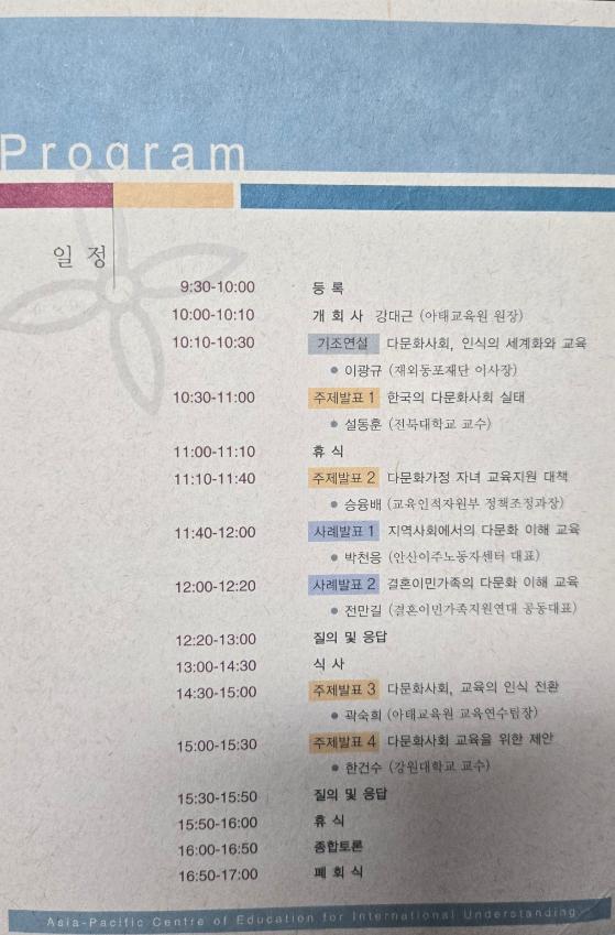 아시아 · 태평양 국제이해교육원에서 주최한 국제이해교육 포럼 팜플릿이다