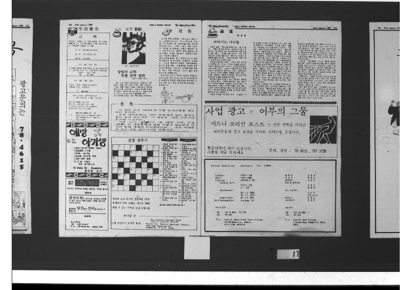 1989년 호주시드니에서 창간된 시드니코리안포스트 창간호이다.
