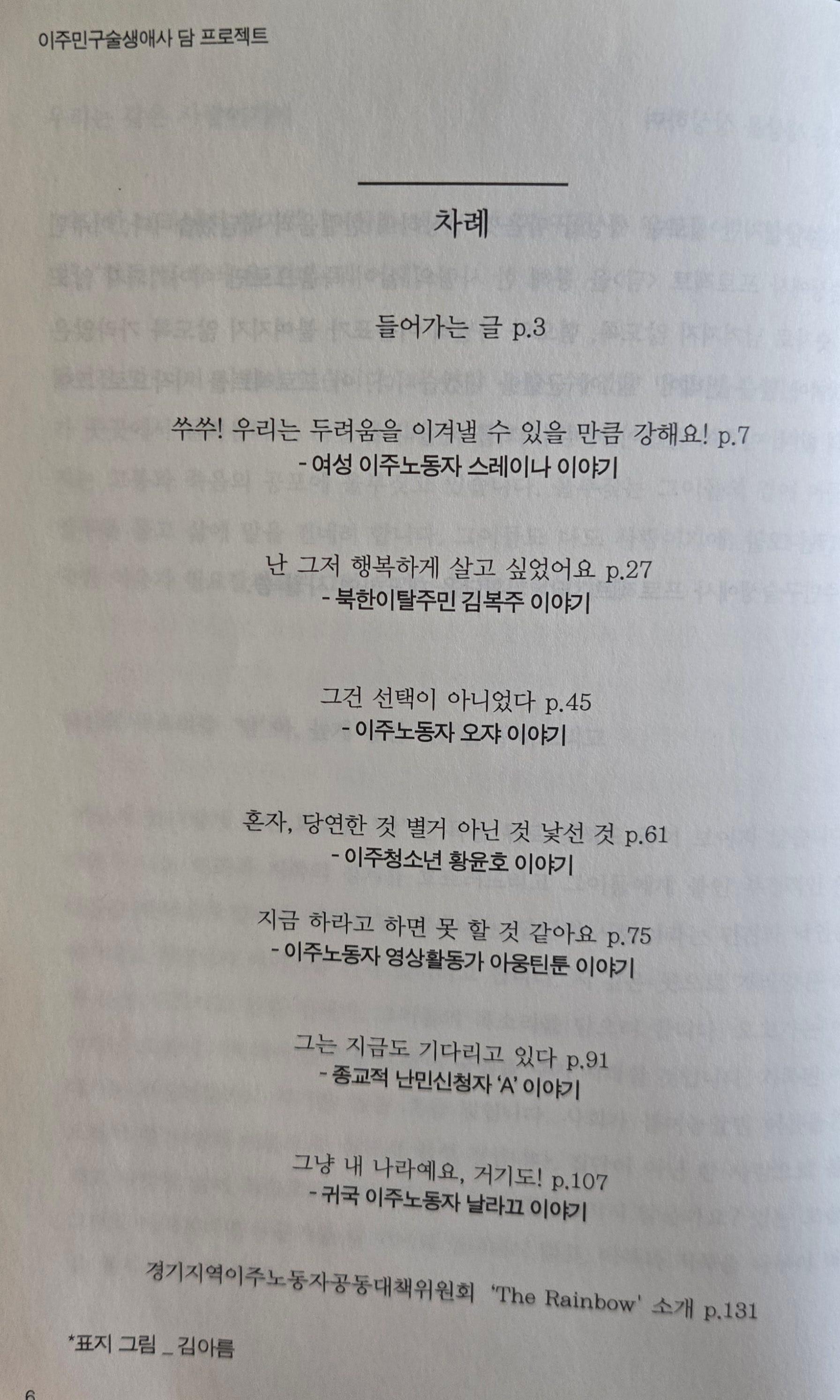 이주민구술생애사 프로젝트 <담>에서 기획한 이주민의 목소리를 '담'아, 높게 쌓인 '담'을 무너뜨리기 위한 이주민들의 목소리글 이다