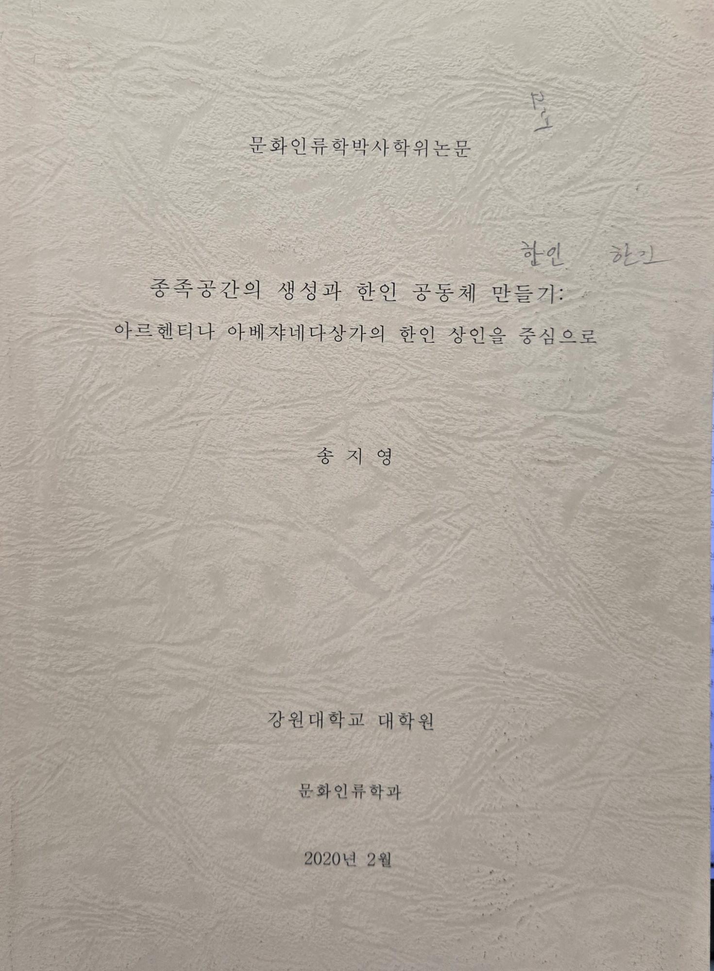 강원대학교 문화인류학 송지영의 박사학위논문이다