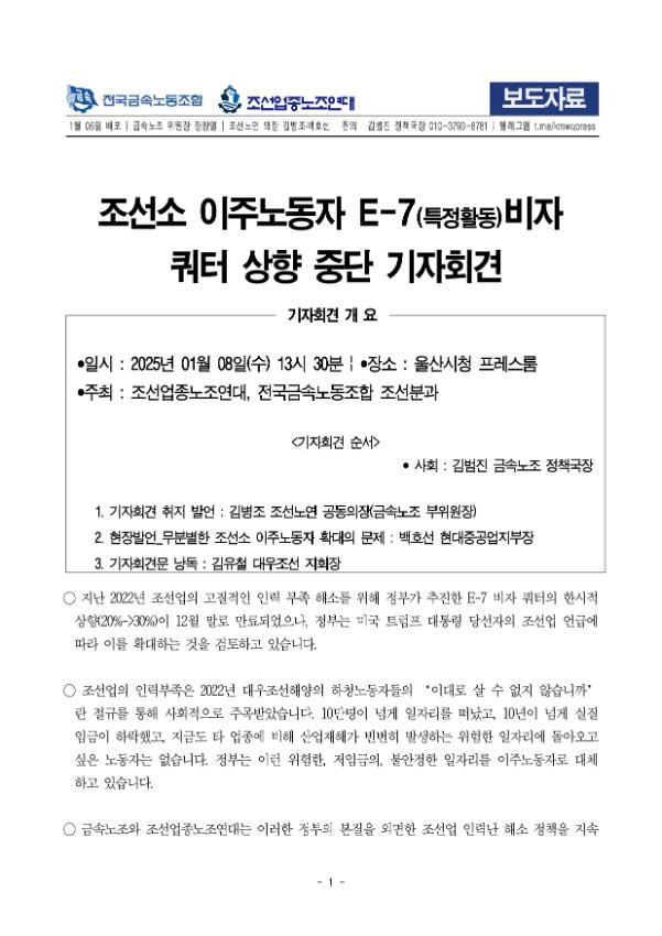 현대중공업 이주노동자 E7비자 상한 쿼터 중단 기자회견