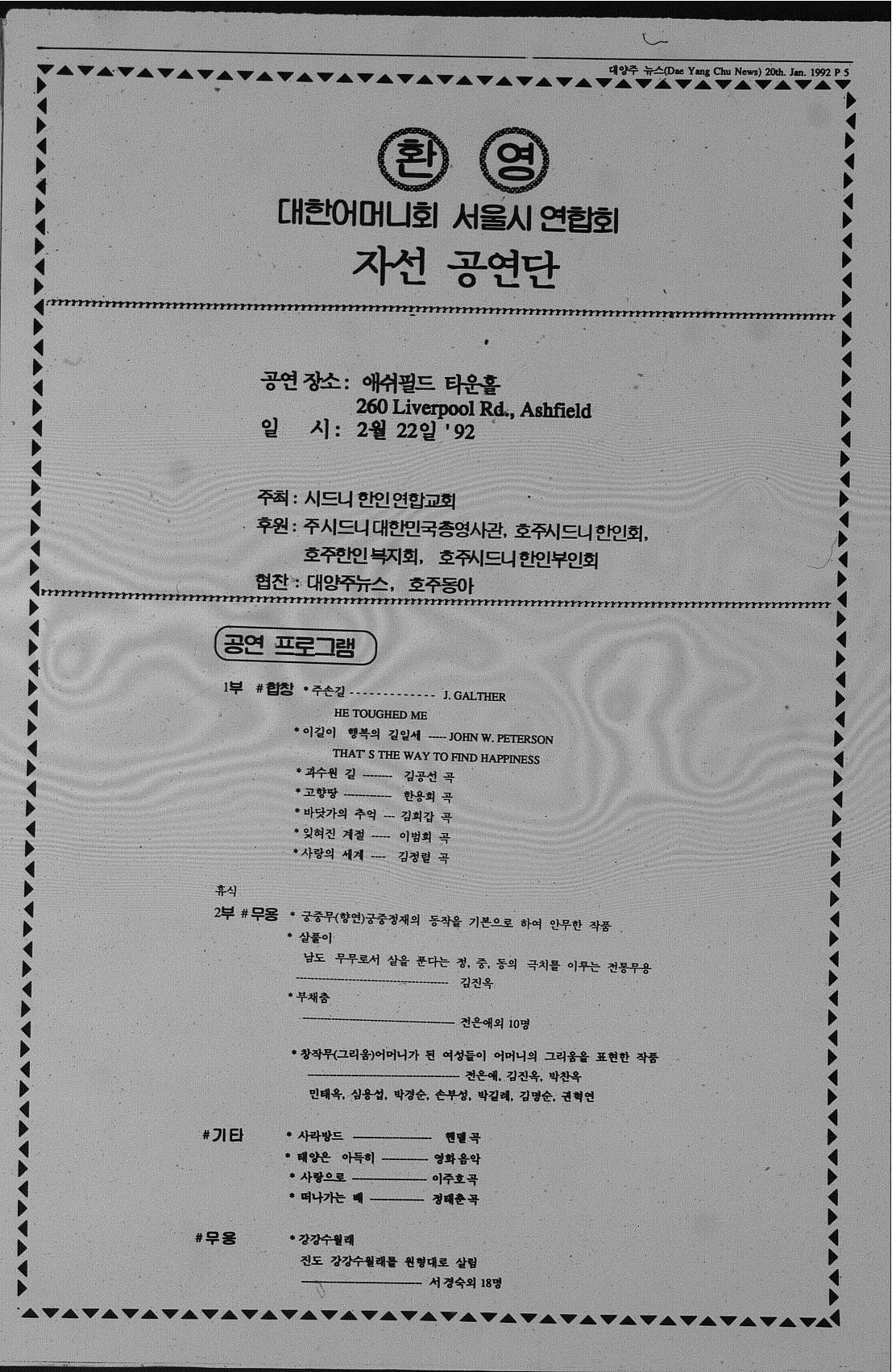 호주에서 제작된 호주에서 제작된 대양주뉴스 No 51은 1991년 6월 28일 발행되었다. 사설- 코리아 마피아, 논단 - 지구인협회회장과 교민회장, 90/91 세금정산 안내, 교민사업 광고들, 각종의 구인광고들이 소개되었다. 광고에는 각종의 현지 블루칼라 노동자 구인광고가 많은 걸로 봐서, 종이 신문이 벼룩시장 역할도 하였음을 알 수 있다.