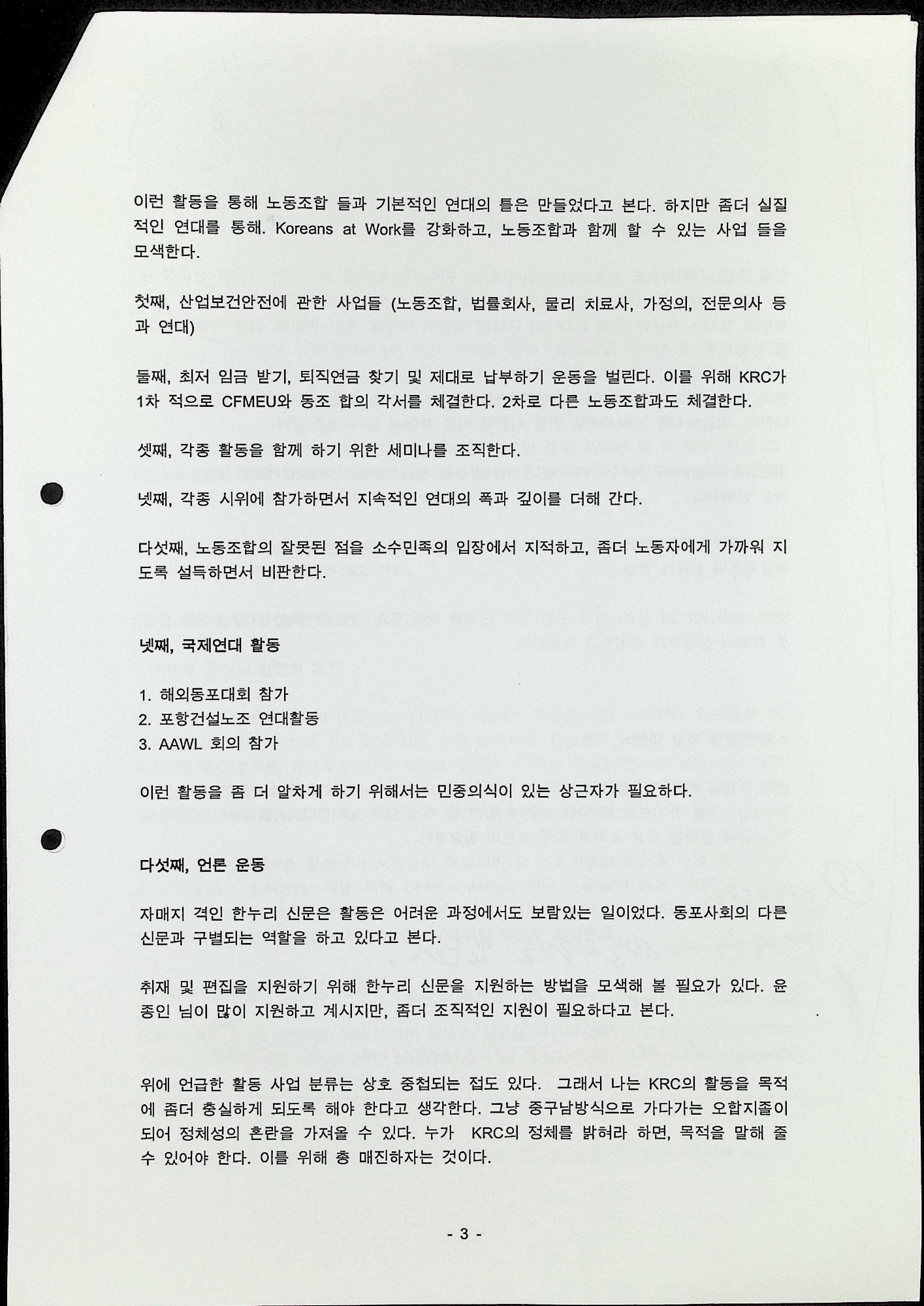 2005년 8월 25일에 있었던 시드니 민족교육문화원 중장기 전략을 위한 토론회에서 신중식이 작성한 토론회 자료이다