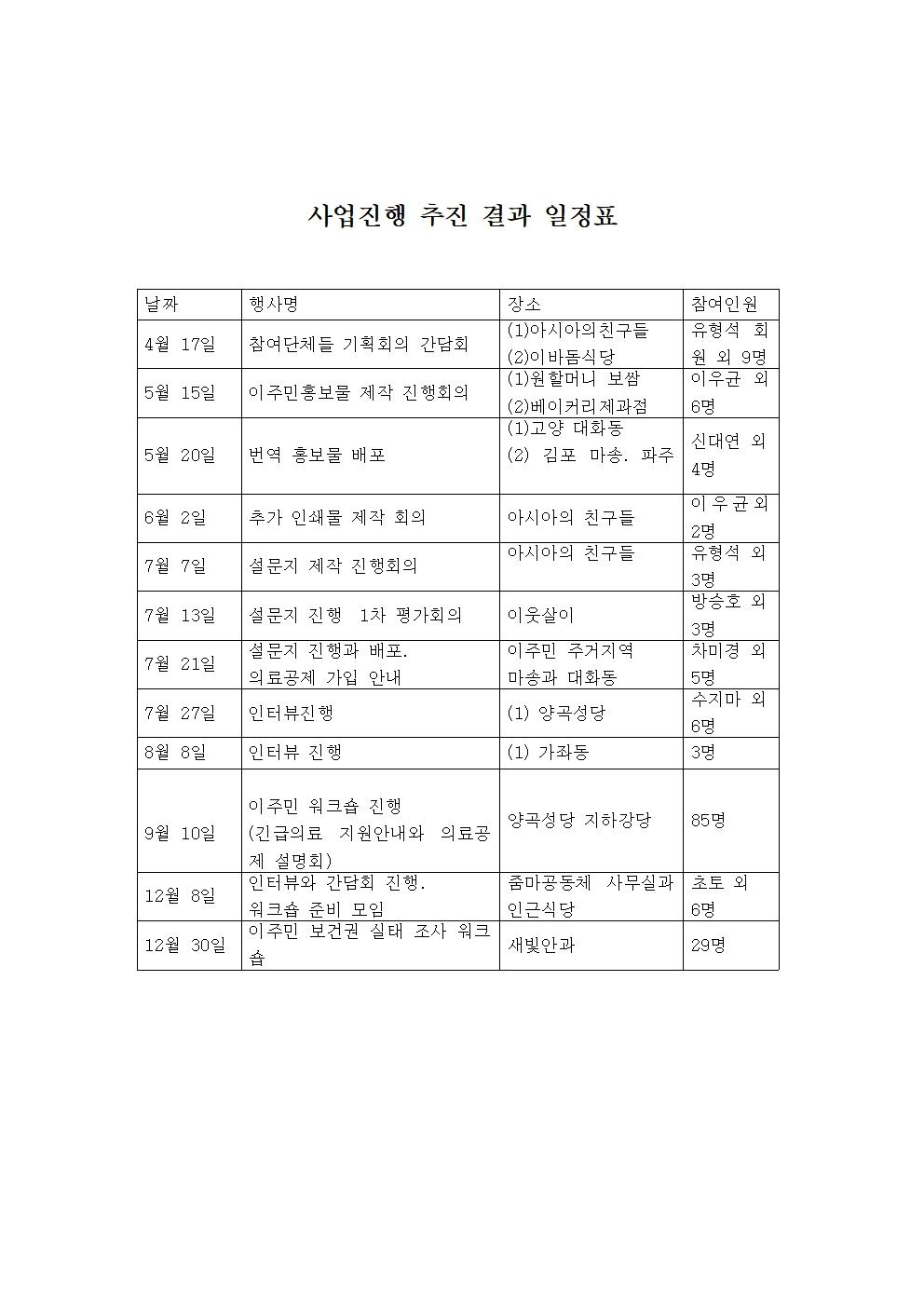 외국인이주노동자보건권프로젝트,아친,아시아교육문화연구소