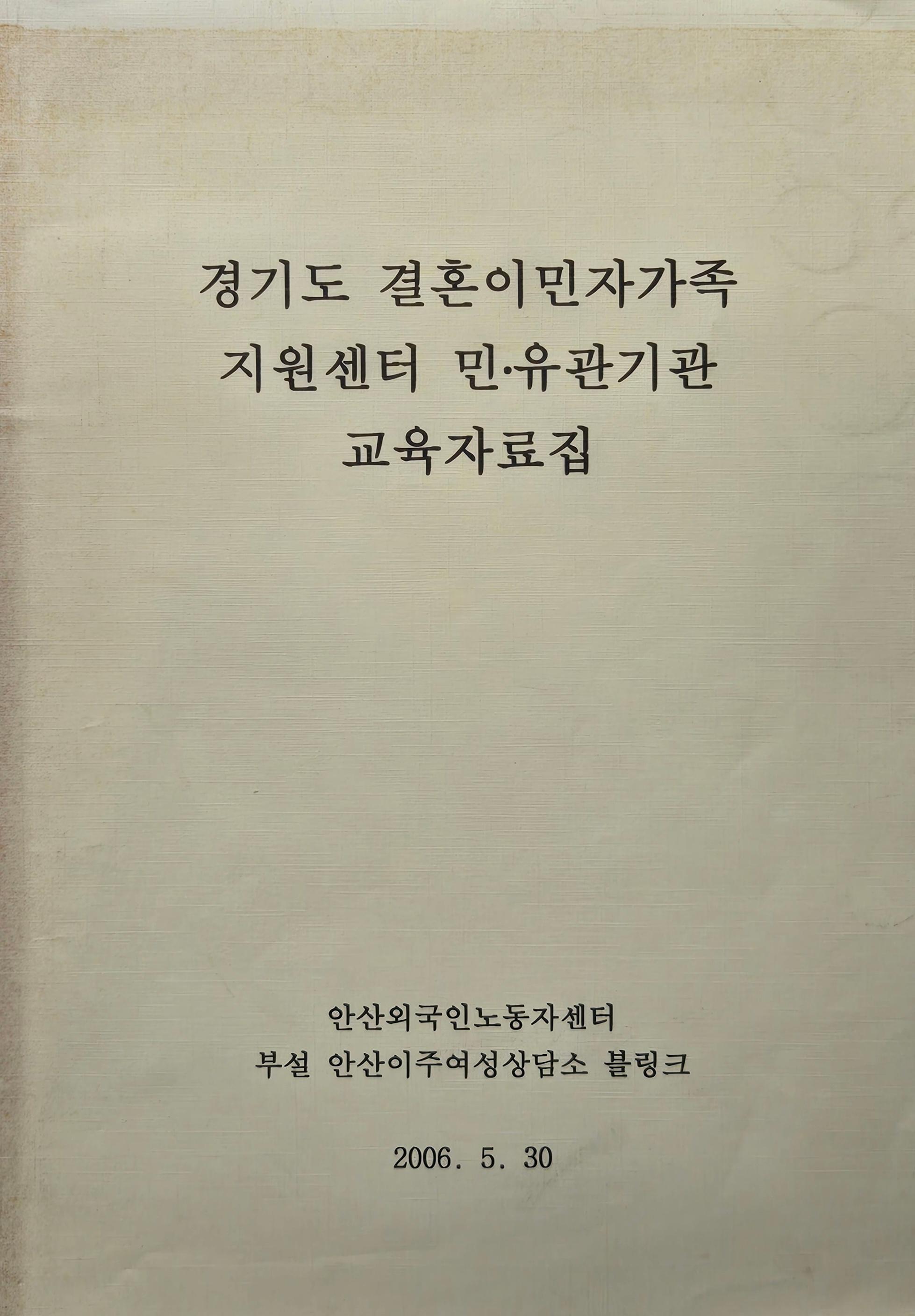 2006년 안산외국인노동자센터 부설 안산이주여성상담소 블링크에서 펴낸 자료집으로 다문화 가족에 대한 이해와 상담, 결혼이민자 가족과 자녀 양육에 관한 내용, 파키스탄커플 모임을 중심으로 본 결혼 이민자 가족 당사자가 말하는 한국사회에서의 다문화 가족 등을 싣고 있다