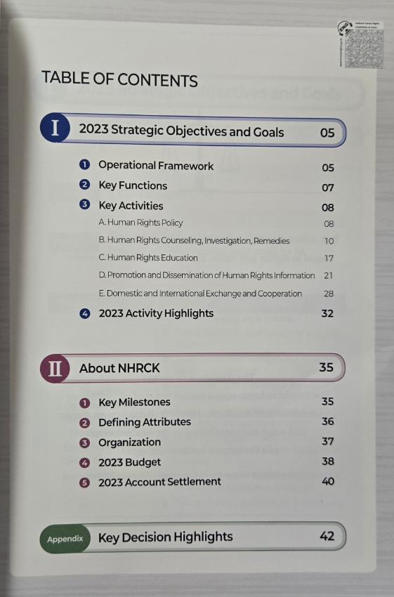 국가인권위원회의 2023년 연간보고서의 영어판으로
