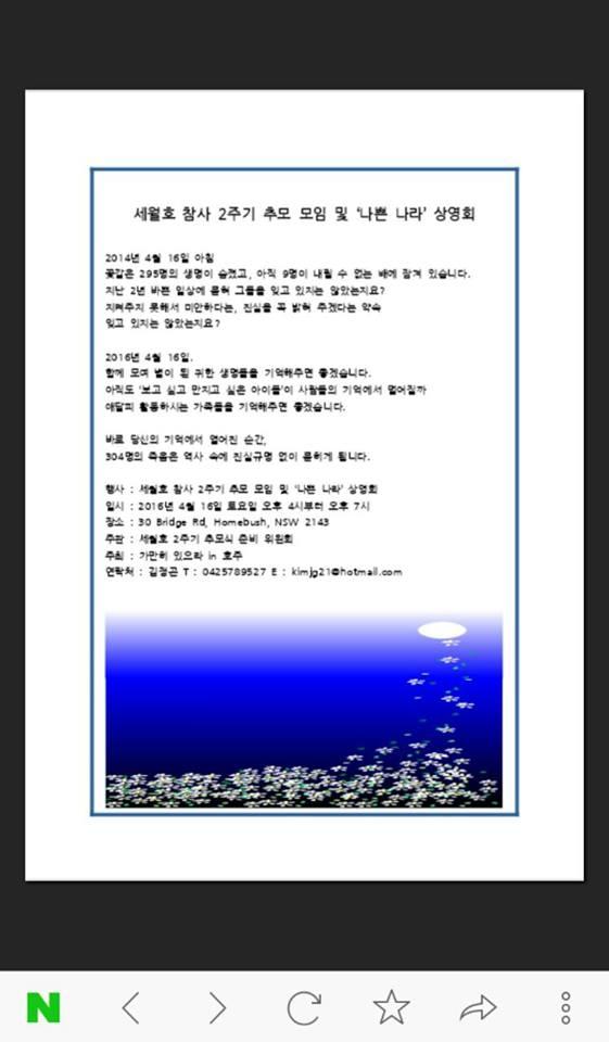 2016,호주,한민족자료실,세월호2주기,추모제,쿠폰,나쁜 나라