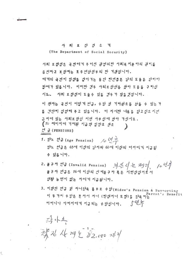 호주 국민이 사회보장성을 통해 받을 수 있는 연금, 수당 및 기타 원조를 간단히 설명한 책자이다
