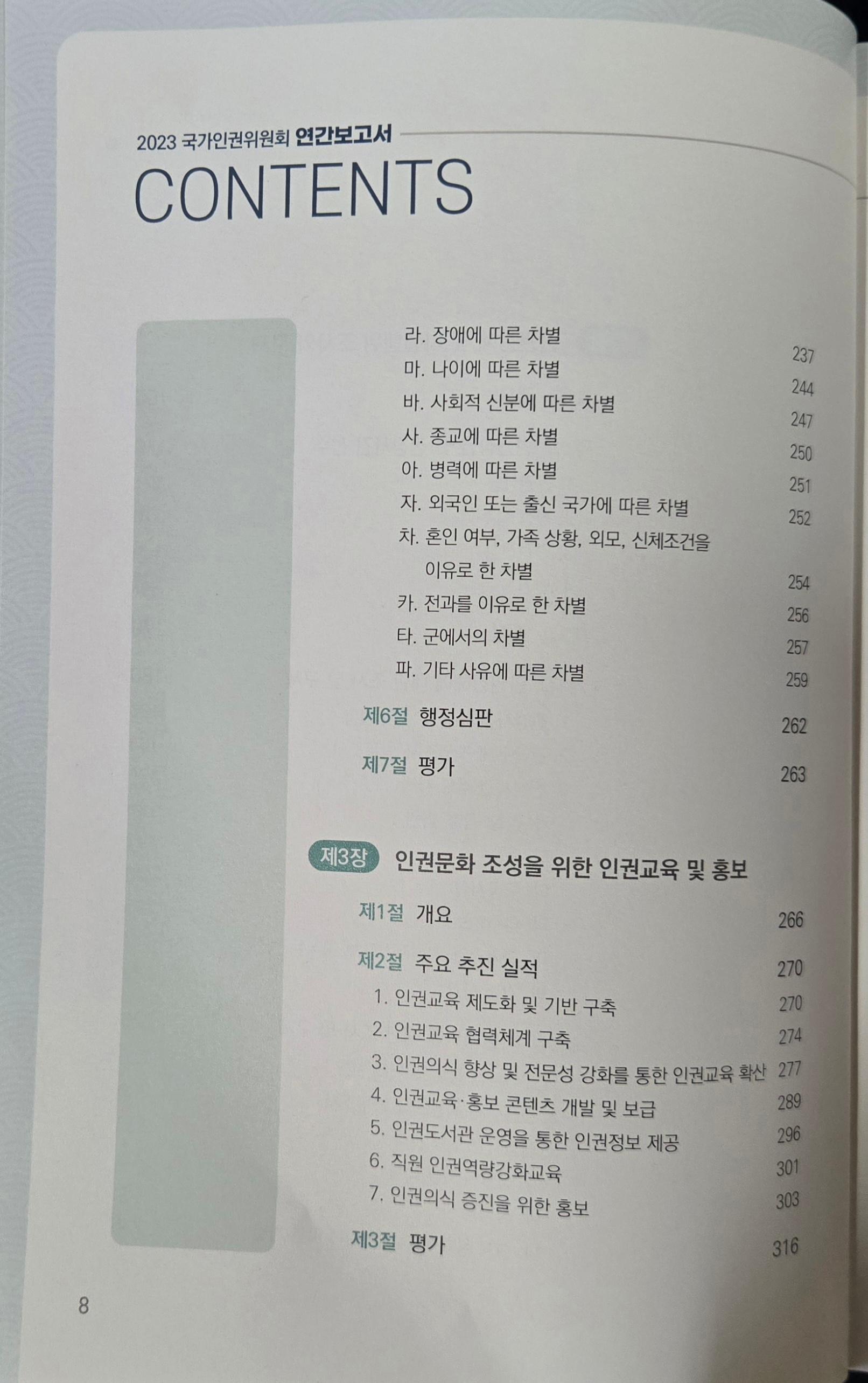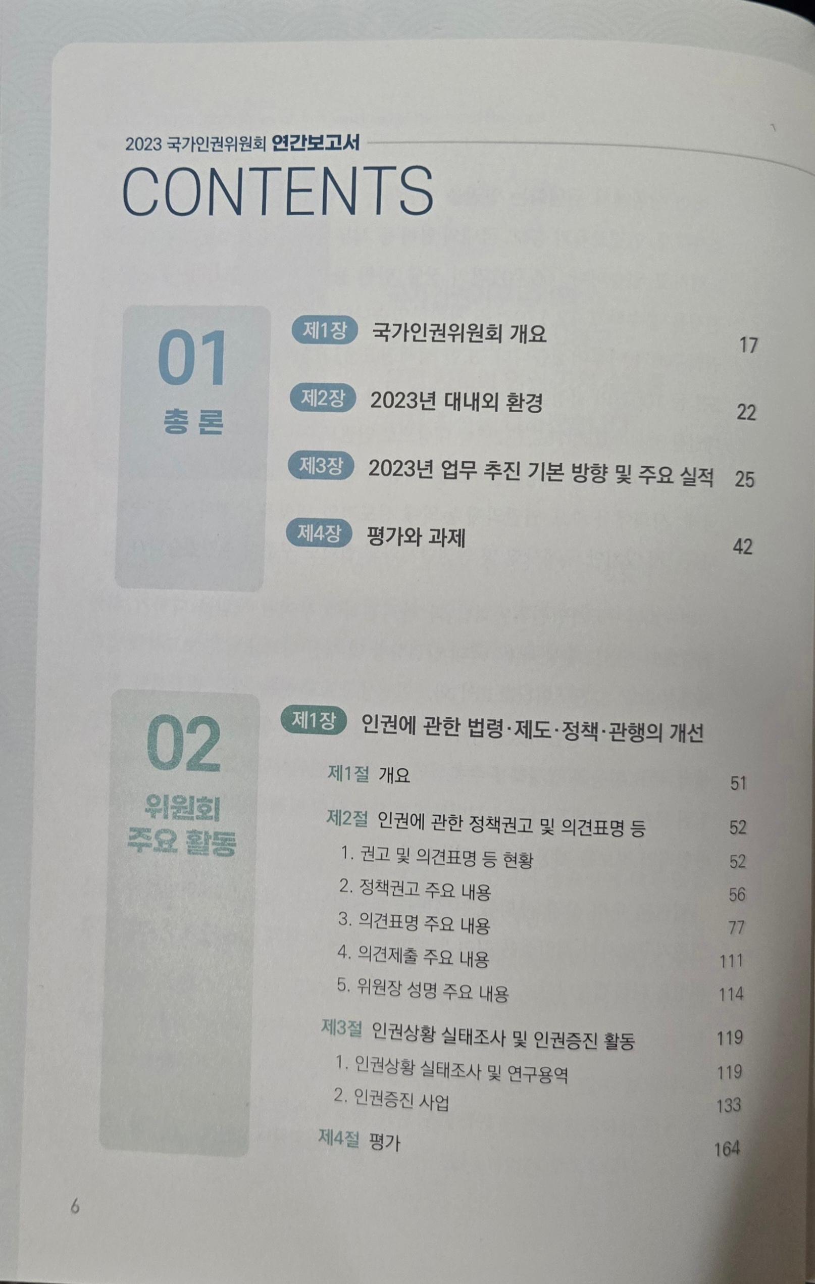 2023년 국가인권위원회에서 펴낸 인권보고서 연간보고서중 1권이다