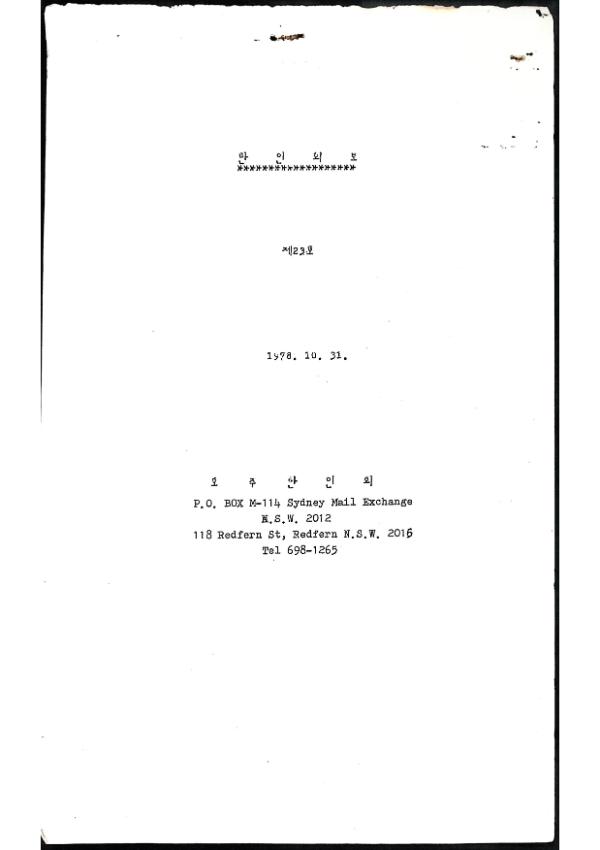 새회장에 신경선씨, 한인회총회 2백여 교민참석 / 77년도 결산보고 승인, 한인회 총이월액 $4,963.00 / 총무에 김동영씨, 한인회 상임위 구성 / 한인회 사무실 개설, 운영위원 스스로가 재정 전담 / "한국의 밤" 개최, 2천여 교민 성황 이룸 / 국제관광공사에서 감사문 보내 / 교민위안의 밤 열어, 한국연예인들의 무대인사 / 한국학교 11월13일 개교, 13명의 발기인이 추진