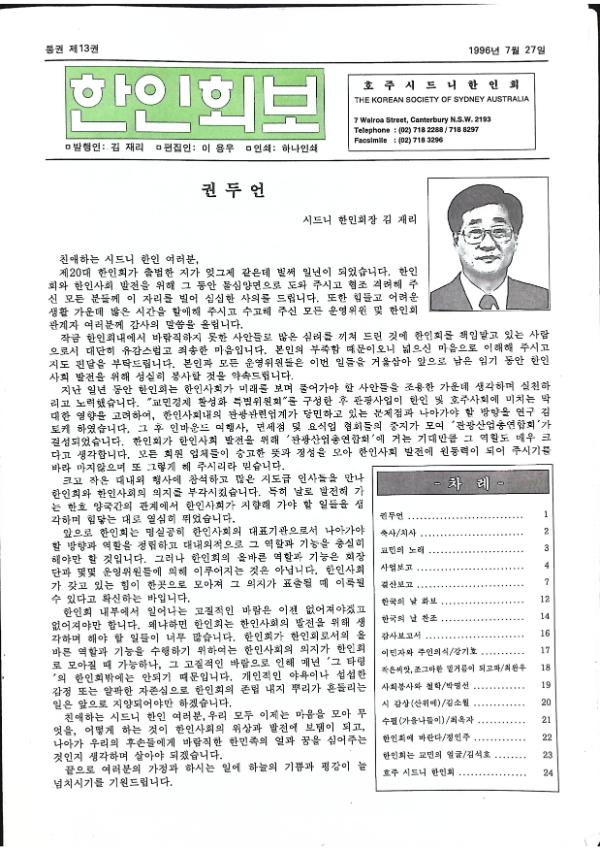 1996,호주,오스트레일리아,시드니,한인회,한인회보