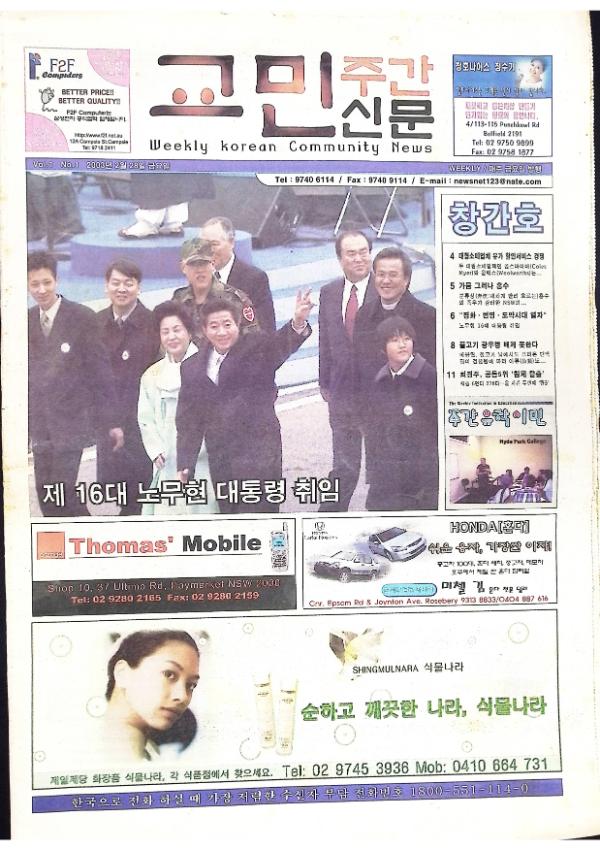 제16대 노무현대통령 취임 / 북, 미사일 동해로 발사 / 대형 소매업체 유가 할인서비스 경쟁 / 미-영, 새 이라크 결의안 제출, 불-러-독은 '반대안'제시 / 호주 정착 첫걸음 - 직장 구하기(상) / 아르바이트와 학습병행 프로그램
