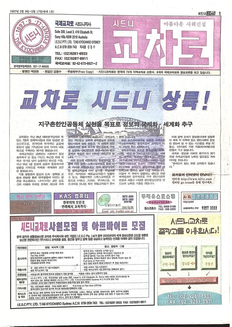 1997년 5월 9일부터 5월 17일간의 시드니 교차로 1호로 지구촌 한인공동체 실현을 목표로 정보의 국제화, 세계화를 추구하며 16페이지로 구성되어 있다