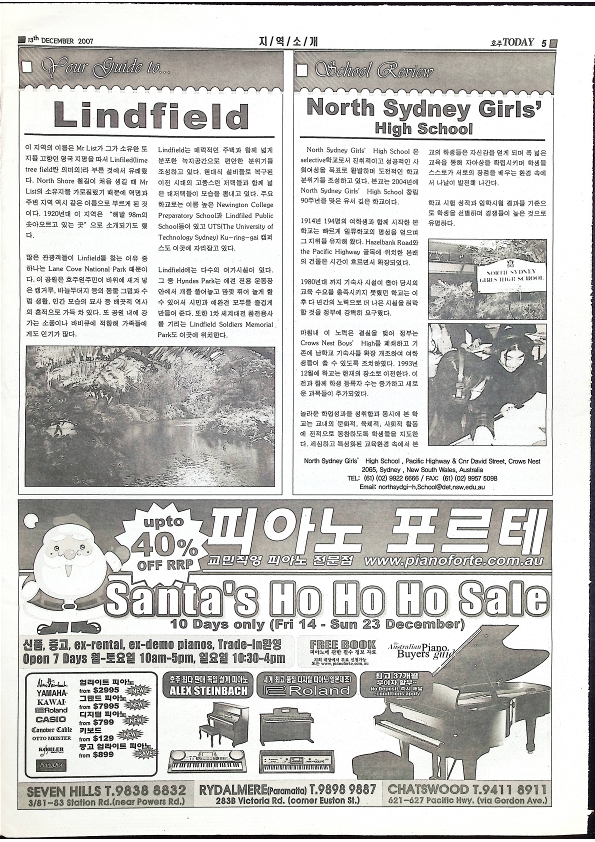 2007년 12월 13일에 발행된 호주 시드니 북부지역신문인 호주Today이다 시드니 북부 지역뉴스 / 자궁경부암 예방 백신 가다실 부작용으로 몸살 / 스크린을 점령한 예수 / 예비 퍼스트레이디들의 스타일 분석해보니... / 이희성의 경제와 융자 이야기 등이 실려 있다
