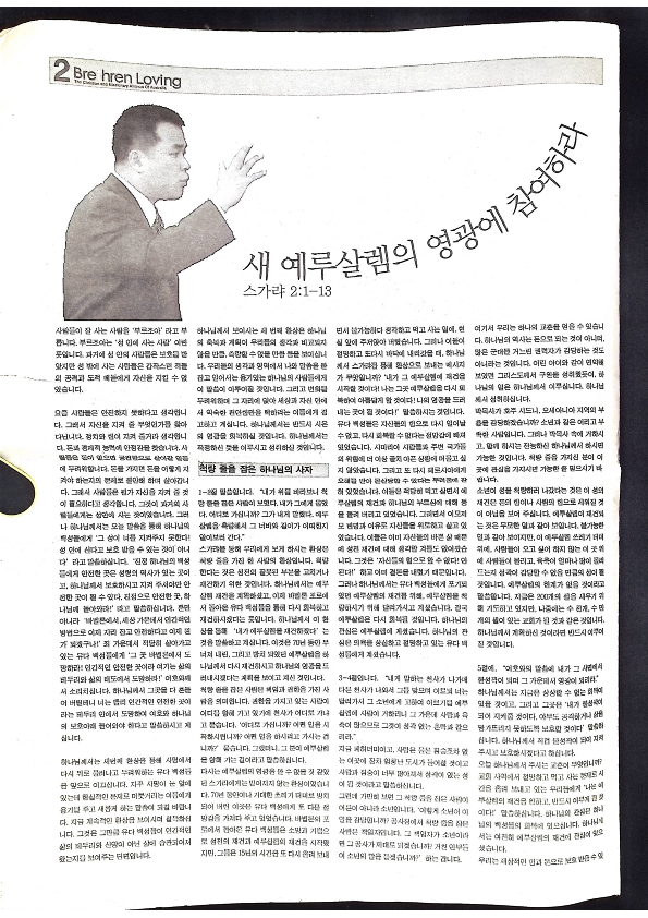 호주에서 2006년 10월에 발행된 형제사랑교회의 신문이다 전도축제 뮤지컬 '사운드 오브 뮤직' / 새 예루살렘의 영광에 참여하라 / 형제사랑교회 창립 5주년 감사예배 / 10대를 향한 10대를 위한 교회 / 우리는 예비 선교사, 주의 강한 군사 될 준비 완료! / 싱가폴의 부흥하는 교회들을 방문하고... / 주님의 빛과 함께하는 가정 등을 싣고 있다