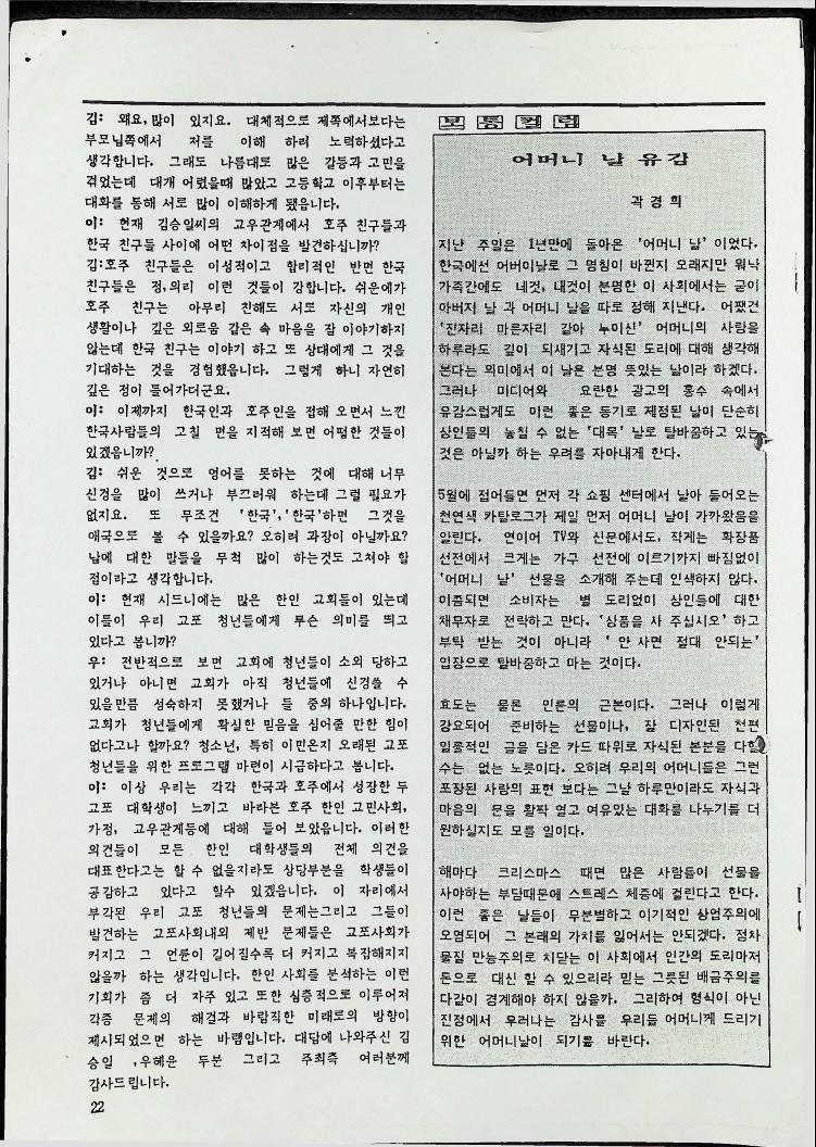 호주 신문에 실린 기사로 대담자 김승일과 우혜윤이 이준호의 사회로 대담한 내용을 싣고 있다