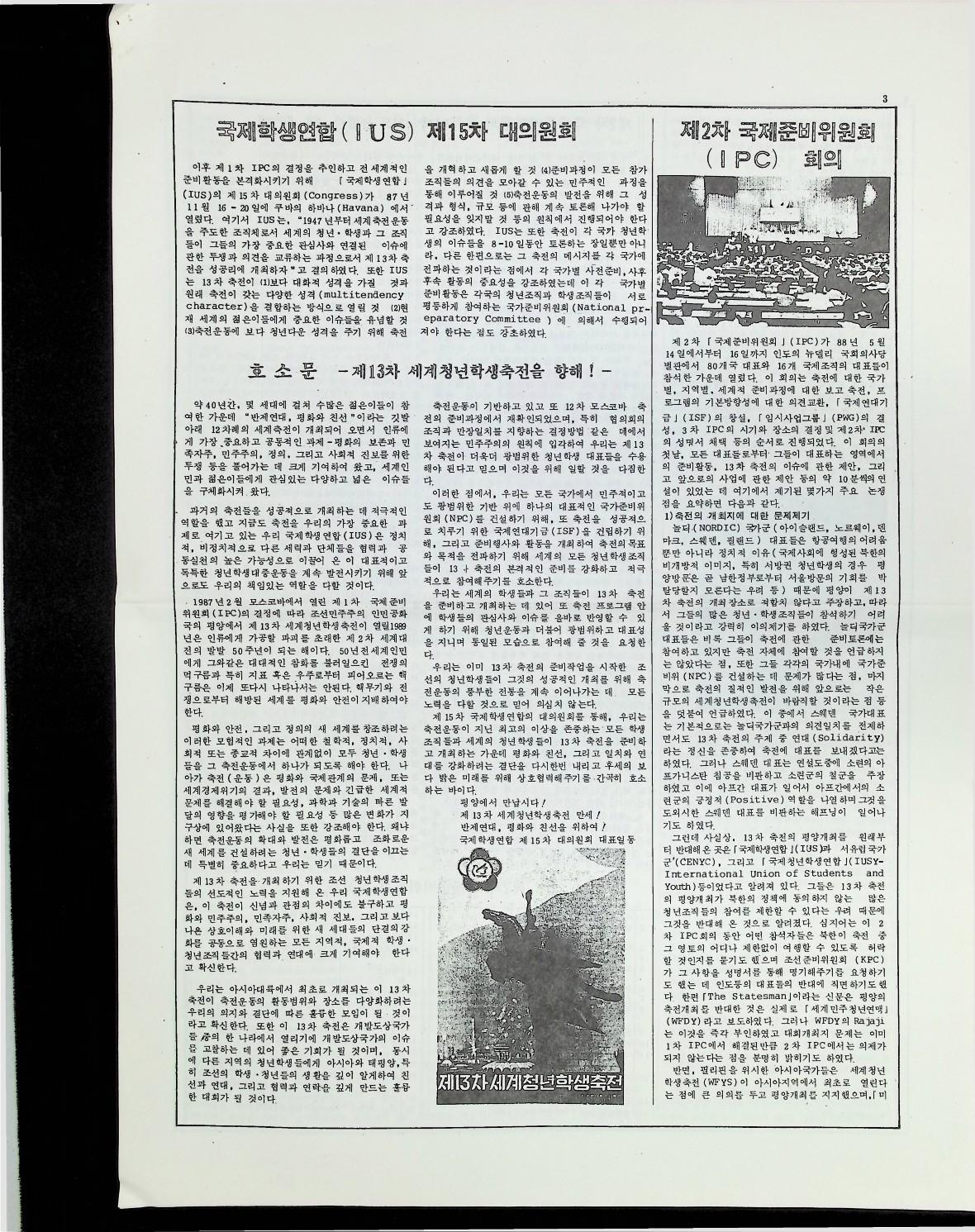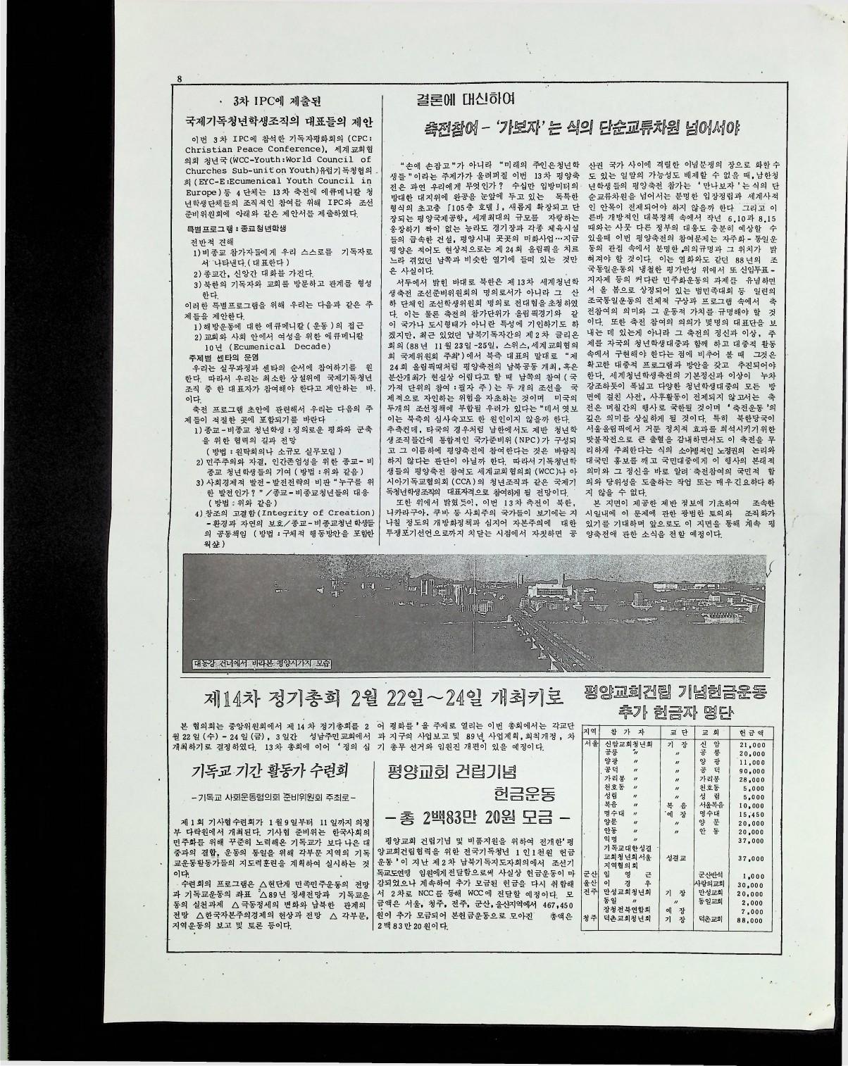 제 13차 세계 청년 학생 축전에 관하여 한국기독교회협의회( KNCC ) 산하 한국기독청년협의회 ( EYC) 에서 만든 자료를 1월 9일자 한국기독청년협의회에서 만든 '하나님의 의' 신문에 실은 기사이다