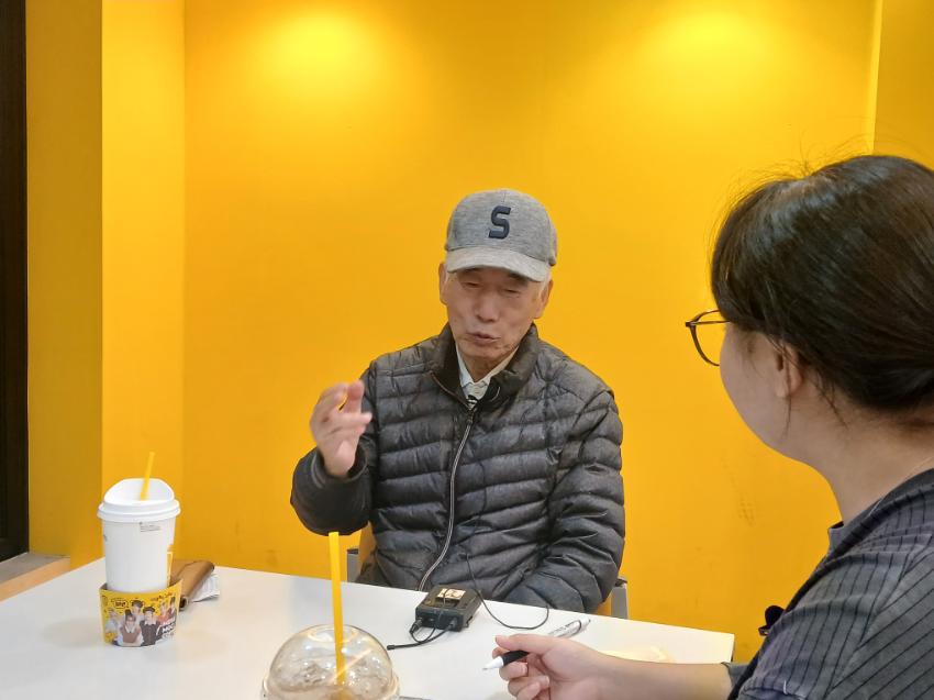 지무환(전 한국유리 근로자)의 2차 면담 현장 사진이다.
