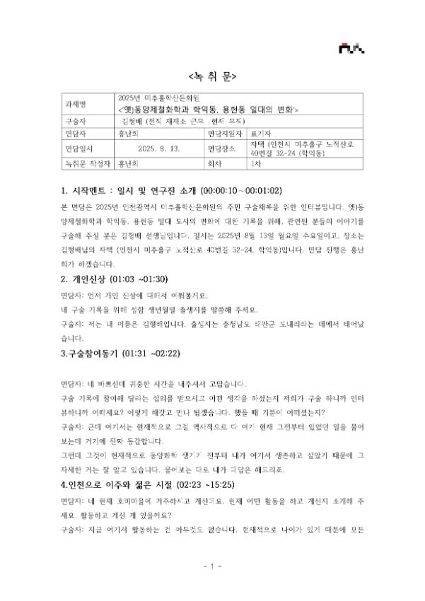 • 면담지원 : 미추홀시민기록단 표기자