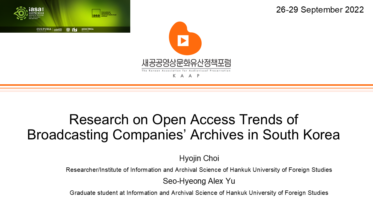 발표제목: Research on Open Access Trends of Broadcasting Companies’ Archives in South Korea