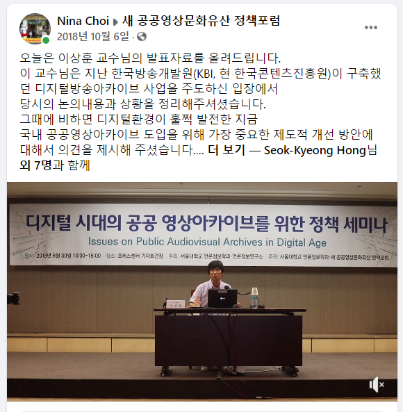 2018 SNU 언론정보연구소-새공공영상문화유산정책포럼 공동세미나 이상훈 발표 녹화자료