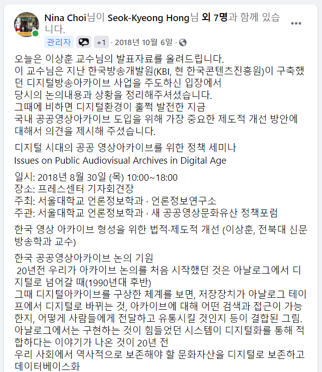 2018 SNU 언론정보연구소-새공공영상문화유산정책포럼 공동세미나 이상훈 발표 녹취록