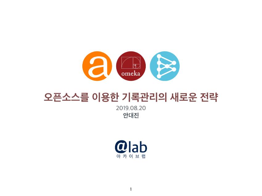 참고자료 공유: <오픈소스를 이용한 기록관리의 새로운 전략>, 아카이브랩 안대진/전혜영, 2019