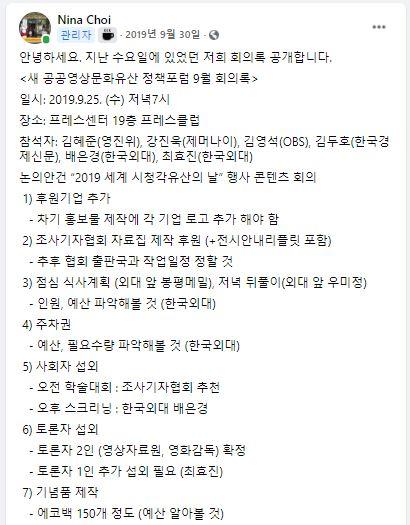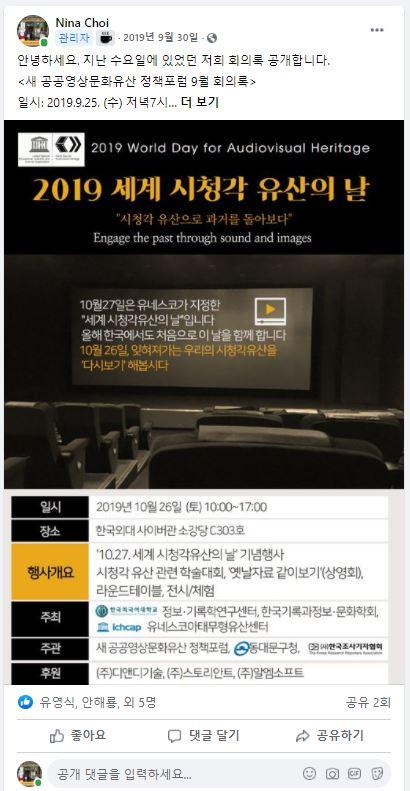 새 공공영상문화유산 정책포럼 2019년 9월 정기모임 회의록