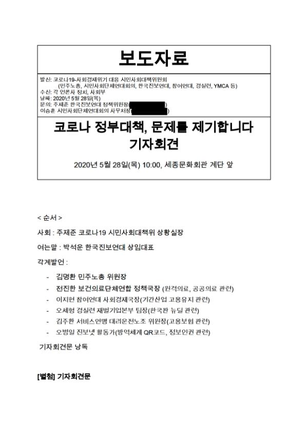 [기자회견] 코로나 정부대책, 문제를 제기합니다